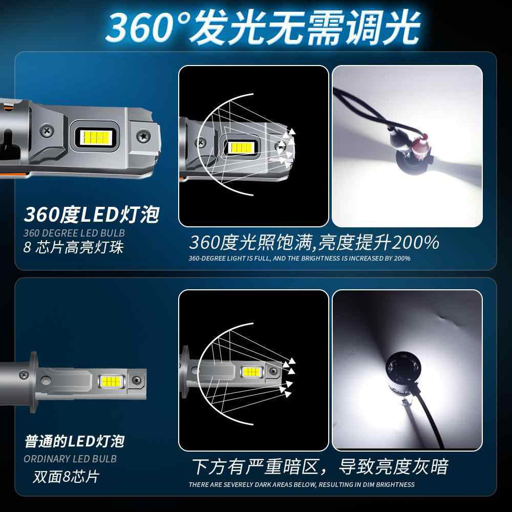 新款直插带风扇H7汽车LED大灯H1 H3 H11 9005 H4 9012高亮LED灯泡