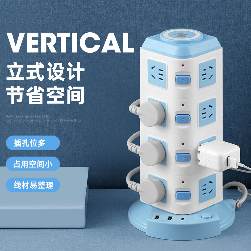 智能无线充立式插座家用多功能USB多孔位插排插板接线板电源插座