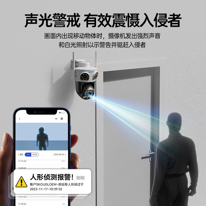 奥克斯摄像头监控器360度无死角室外手机远程家用店铺高清夜视影