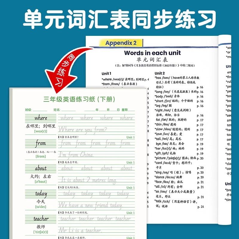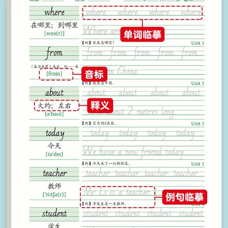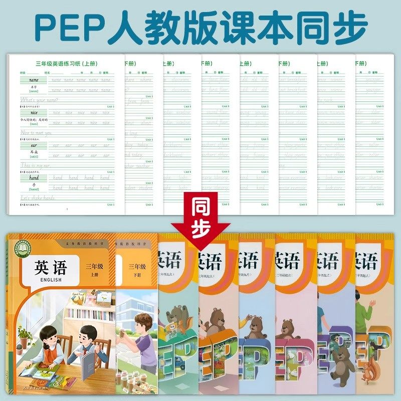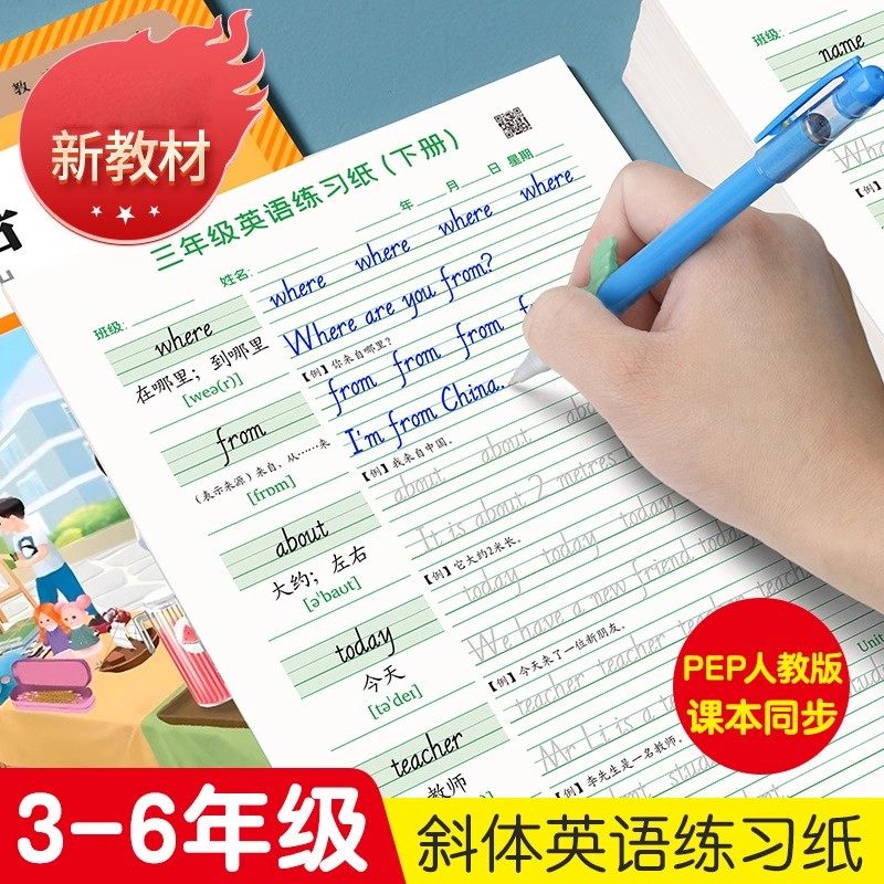 新版三年级上册练字帖PEP人教版同步英文单词描红本3三年级起点四五六年级上下册英语字帖练习纸儿童斜体描红