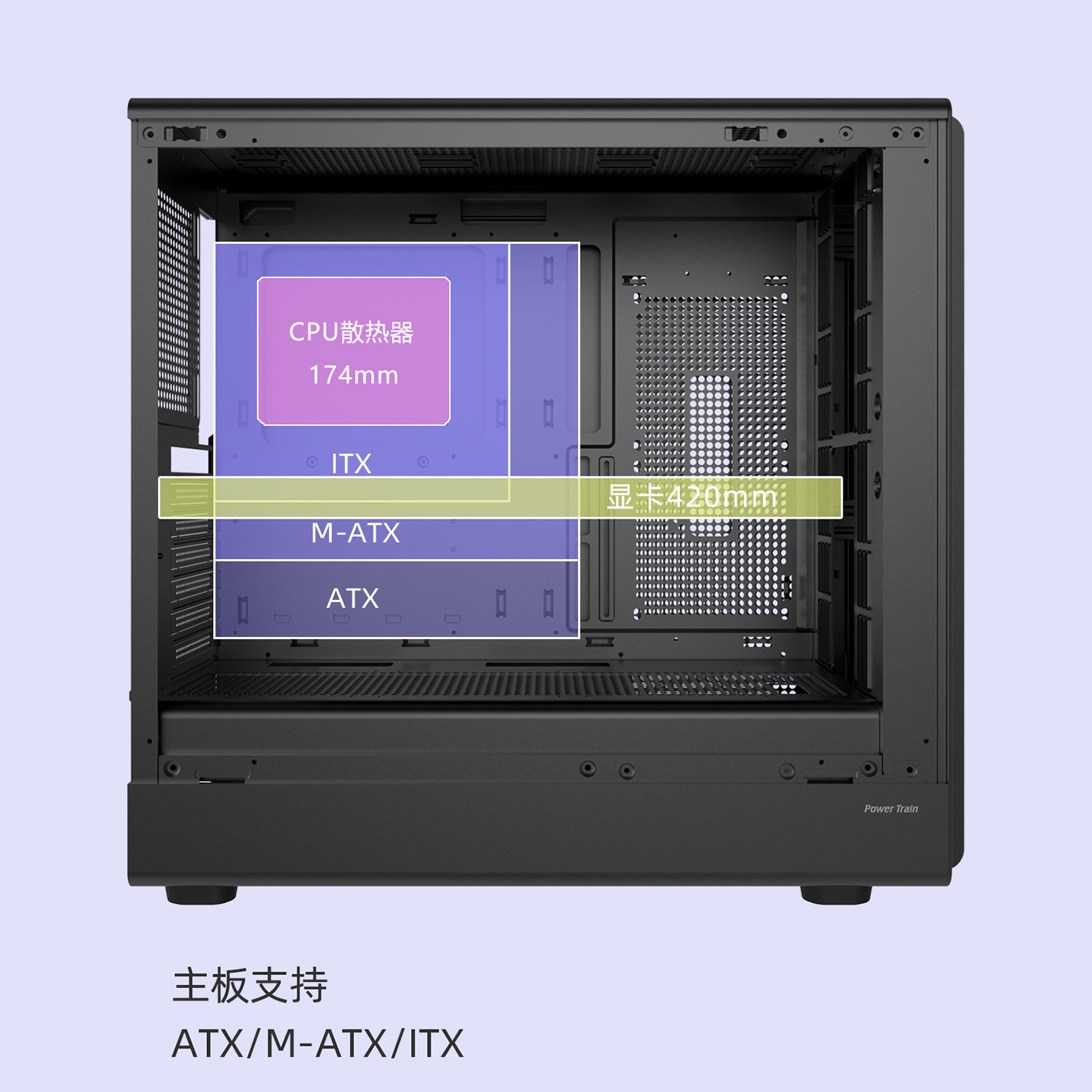 动力火车臻界G3台式机玻璃侧透网孔透气360水冷ATX游戏电脑机箱