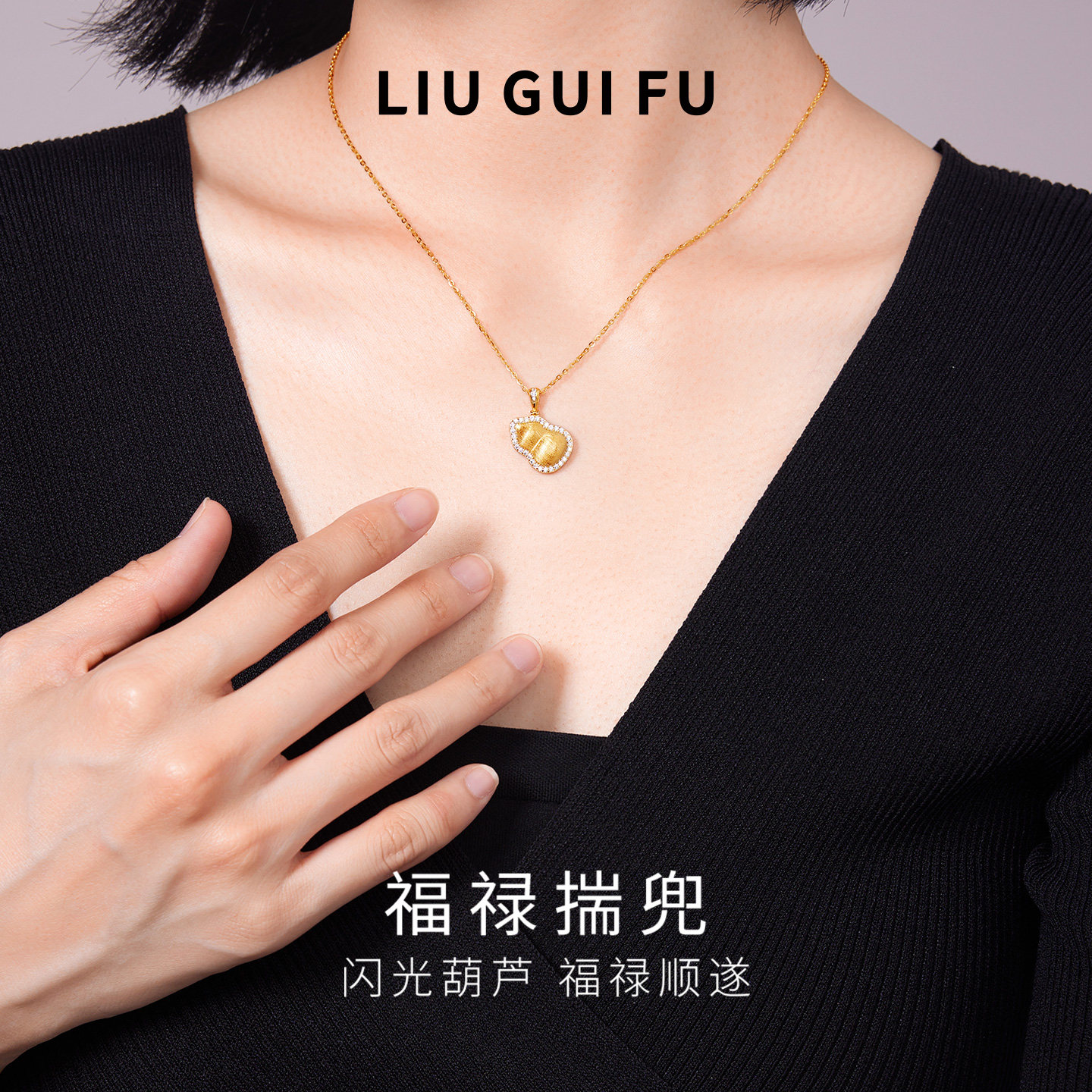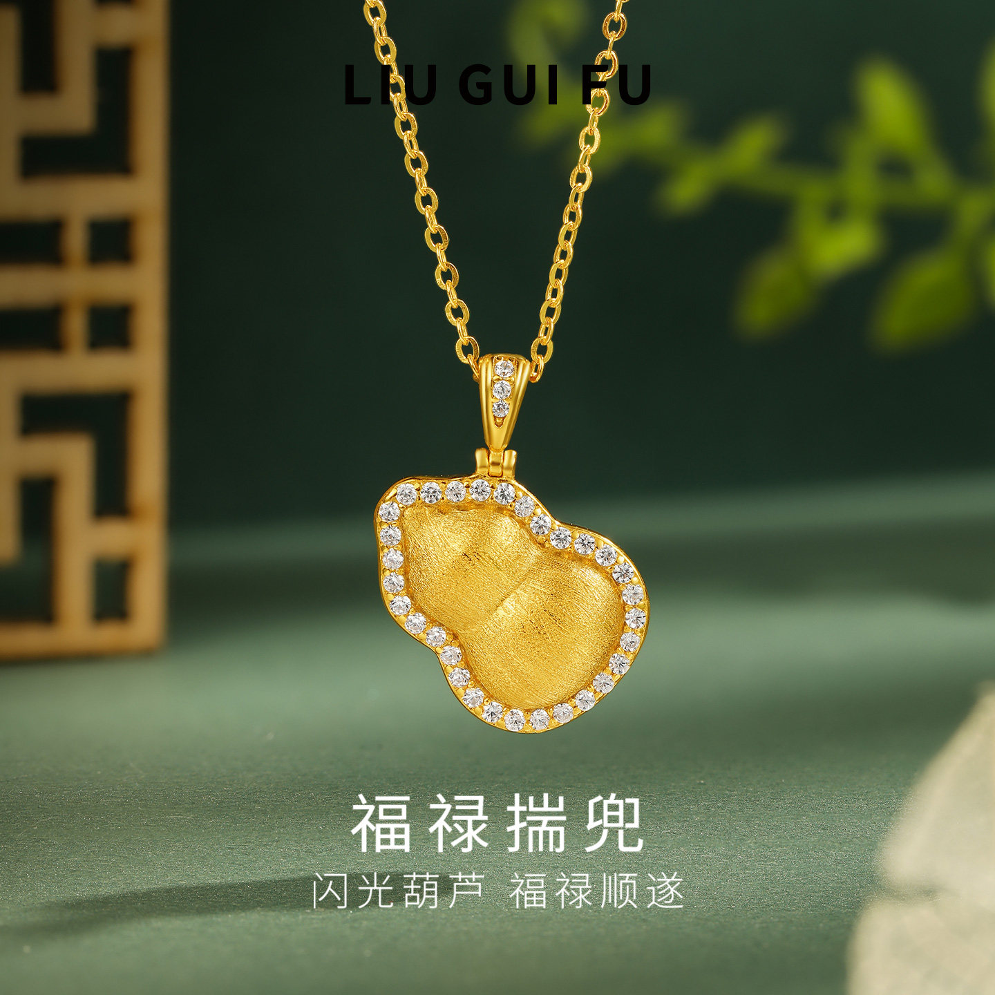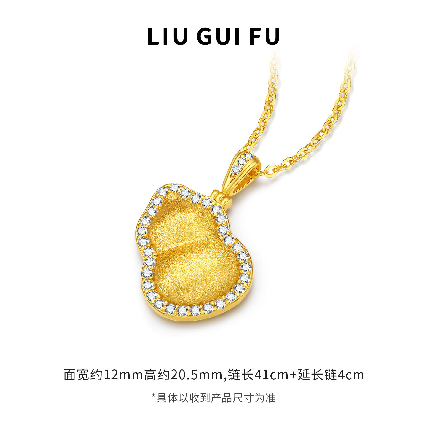 六桂福珠宝S925纯银新中式复古金色拉丝葫芦项链女圣诞礼物送女友