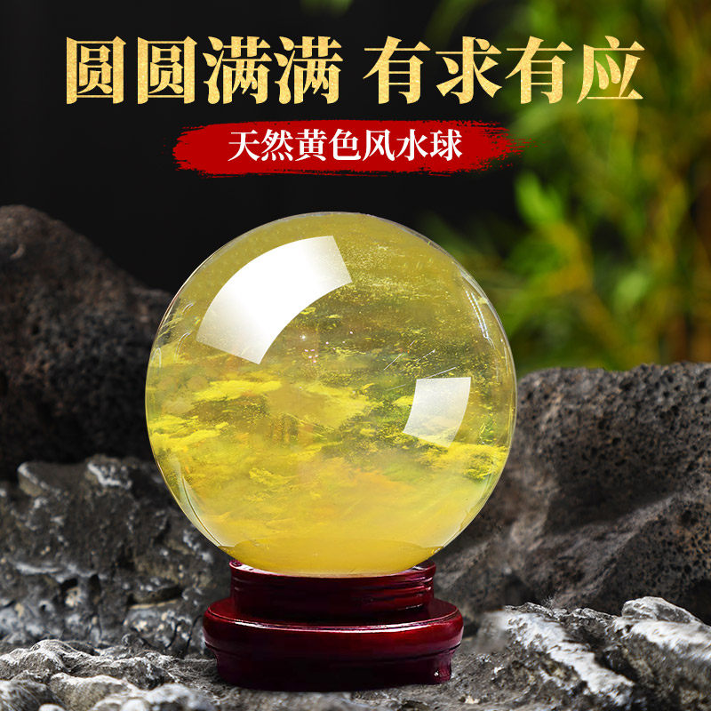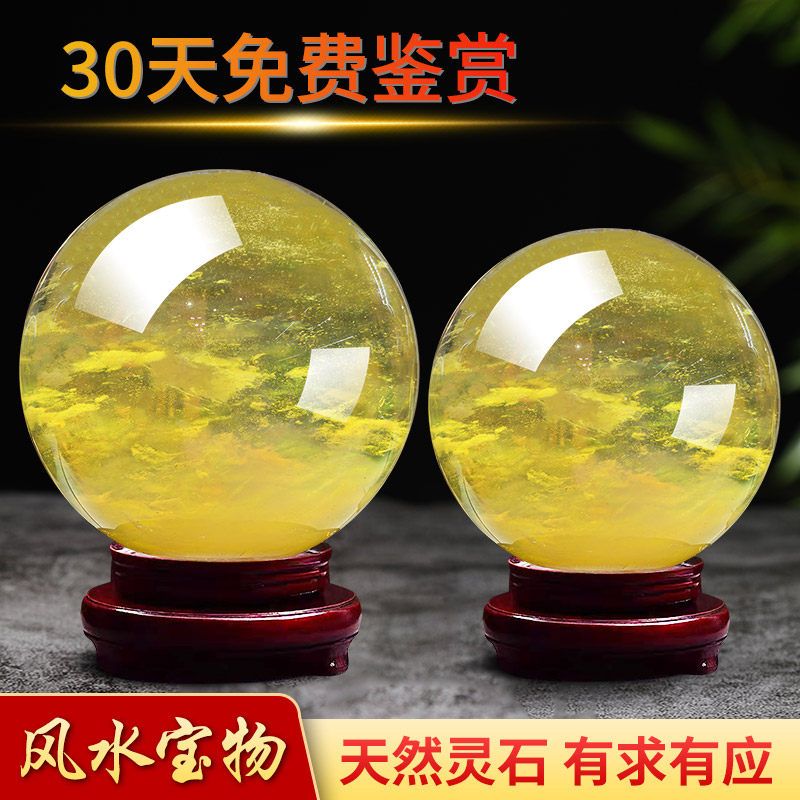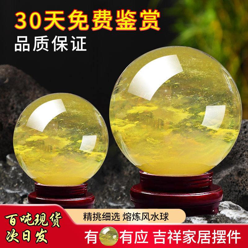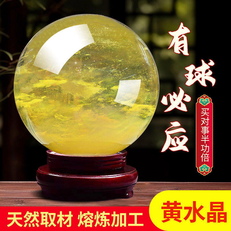 天然黄色水晶球摆件自然熔炼打磨开业乔迁高端装饰送礼办公招财