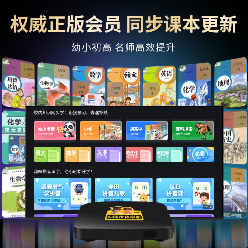 莹辉2025新款高清网络播放器机顶盒教育伴学机幼儿启蒙小学到高中电视初中早教拼音护眼辅导同步大屏连接教材