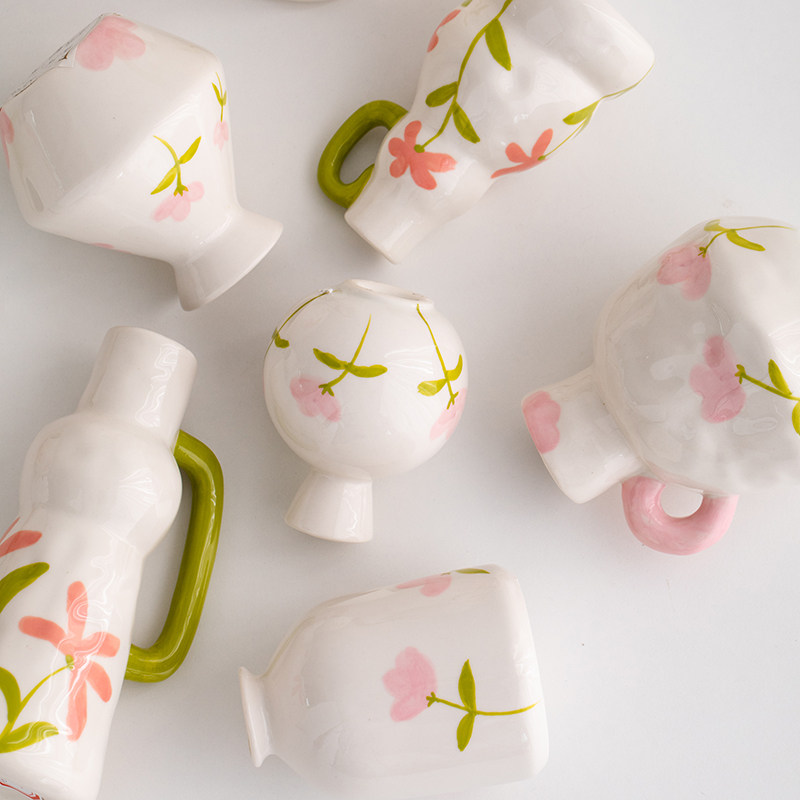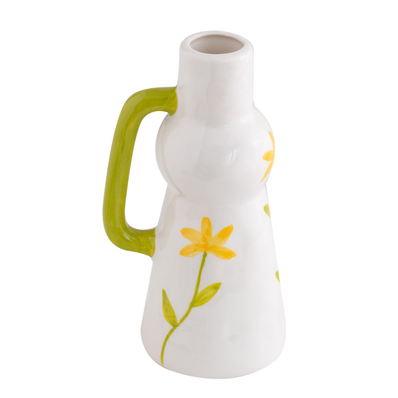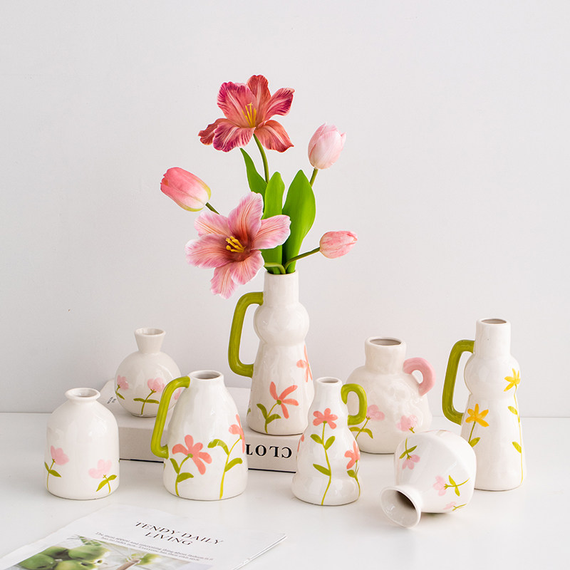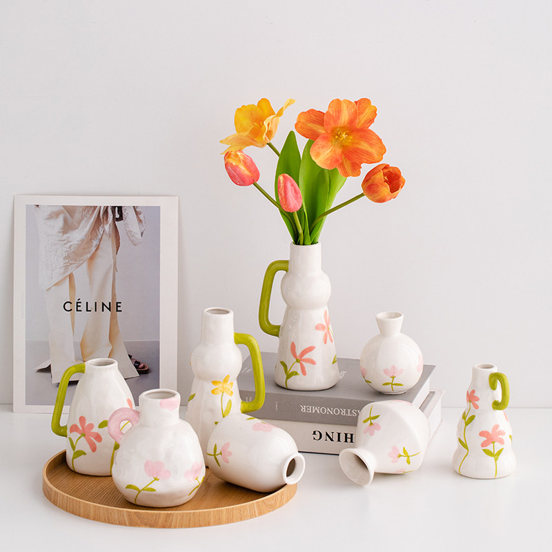 手绘陶瓷花瓶摆件客厅插花轻奢高级感田园风水培白色可爱小号迷你