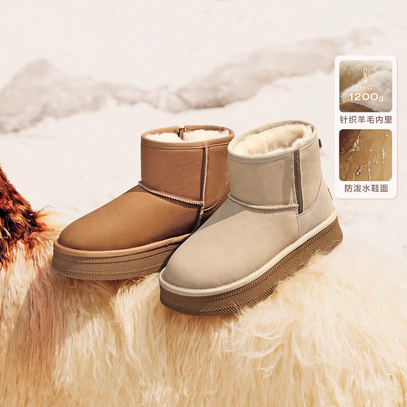 miu家厚底雪地靴女冬季真皮短靴羊毛侧拉链增高厚底加绒毛毛棉鞋