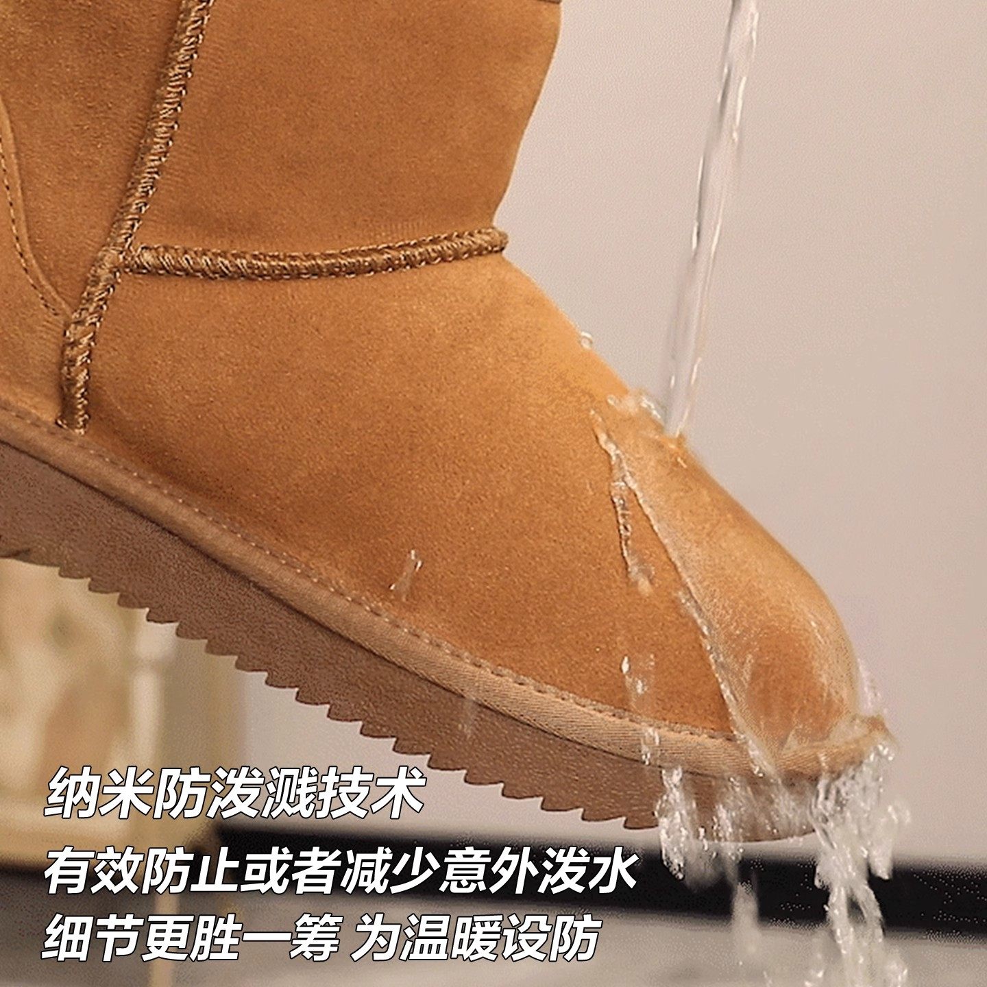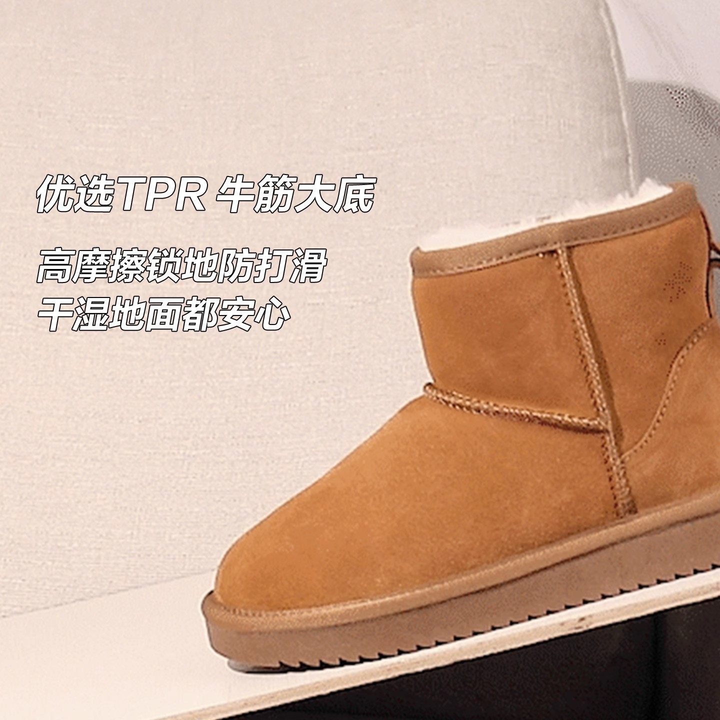 油叽叽~真皮羊毛雪地靴女冬季加绒加厚保暖棉靴厚底增高短筒靴子