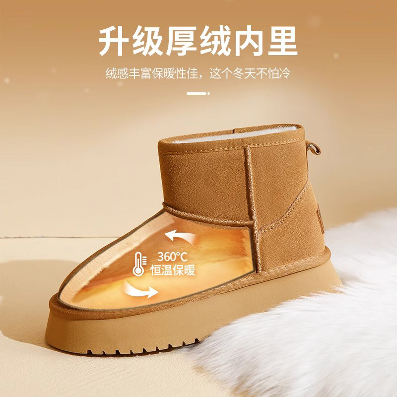 厚底内增高雪地靴女款2025新款冬季加绒加厚短筒真皮防水雪地棉鞋
