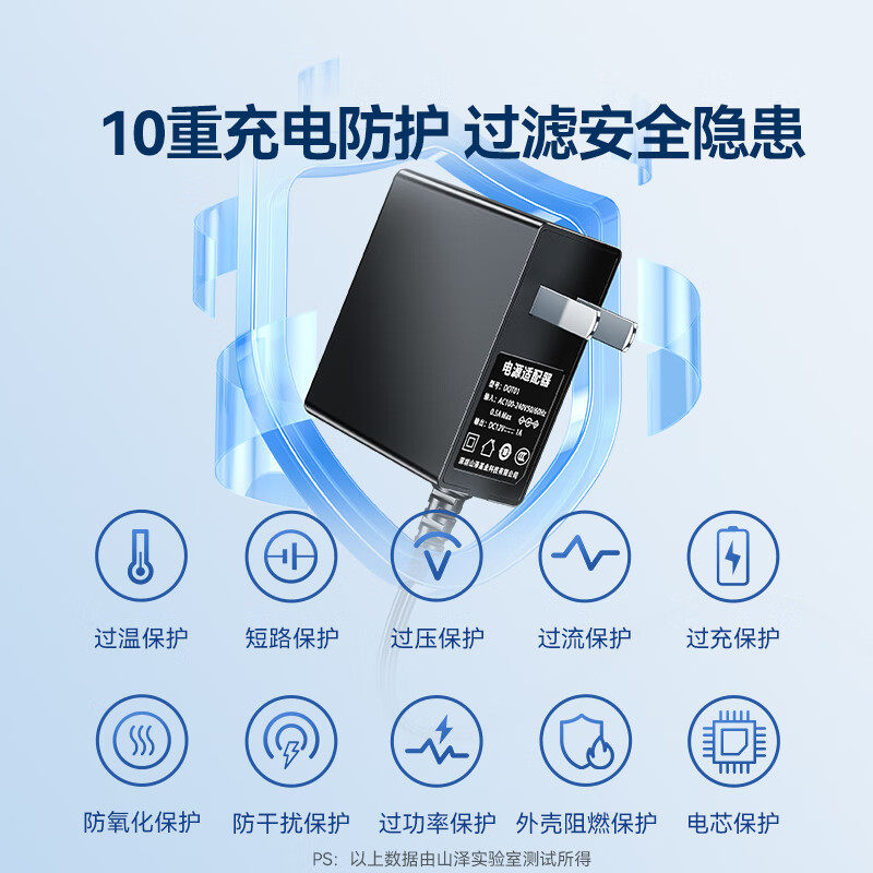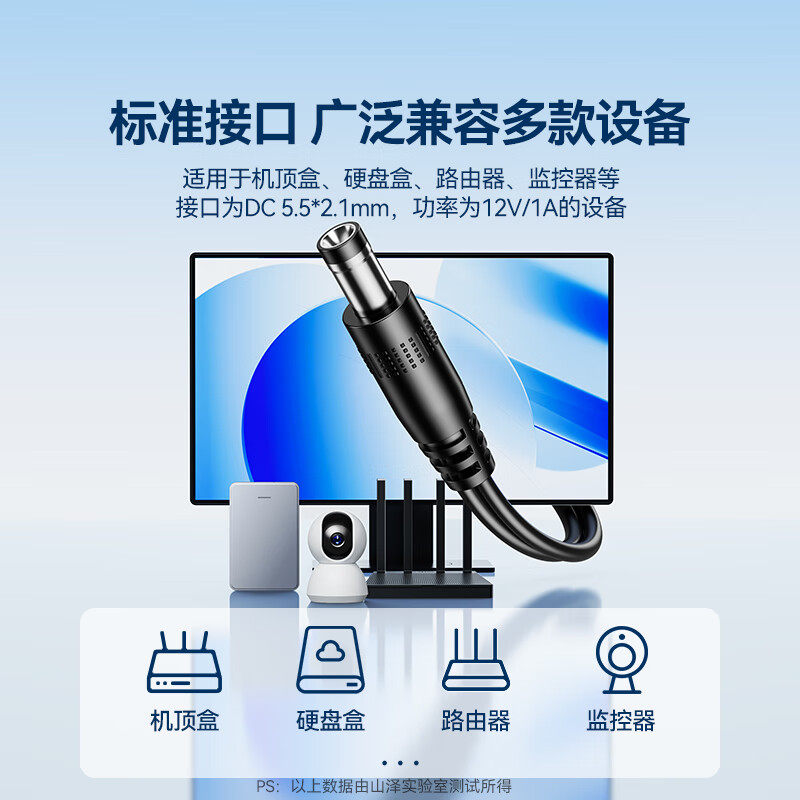 山泽12V电源适配器1A DC适用路由器电脑显示器屏监控摄像头音响电子琴机顶盒移动硬盘盒圆孔通用充电器电源线