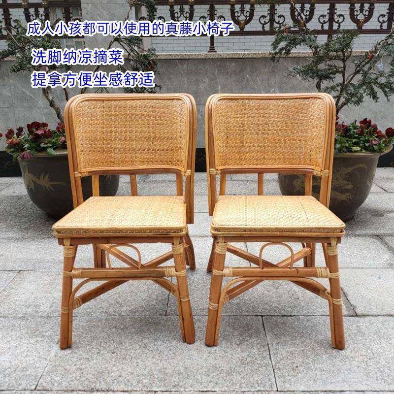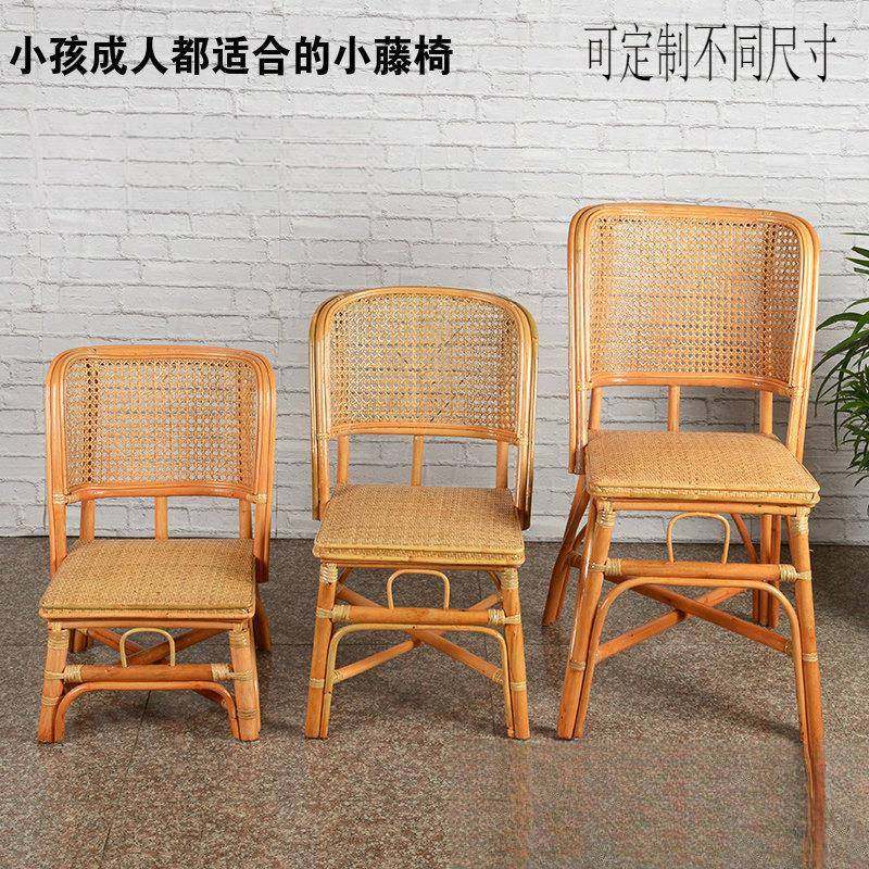 天然真藤椅成儿童小小藤椅藤椅老人靠背人椅闲椅餐椅厅阳台三休件