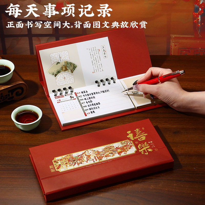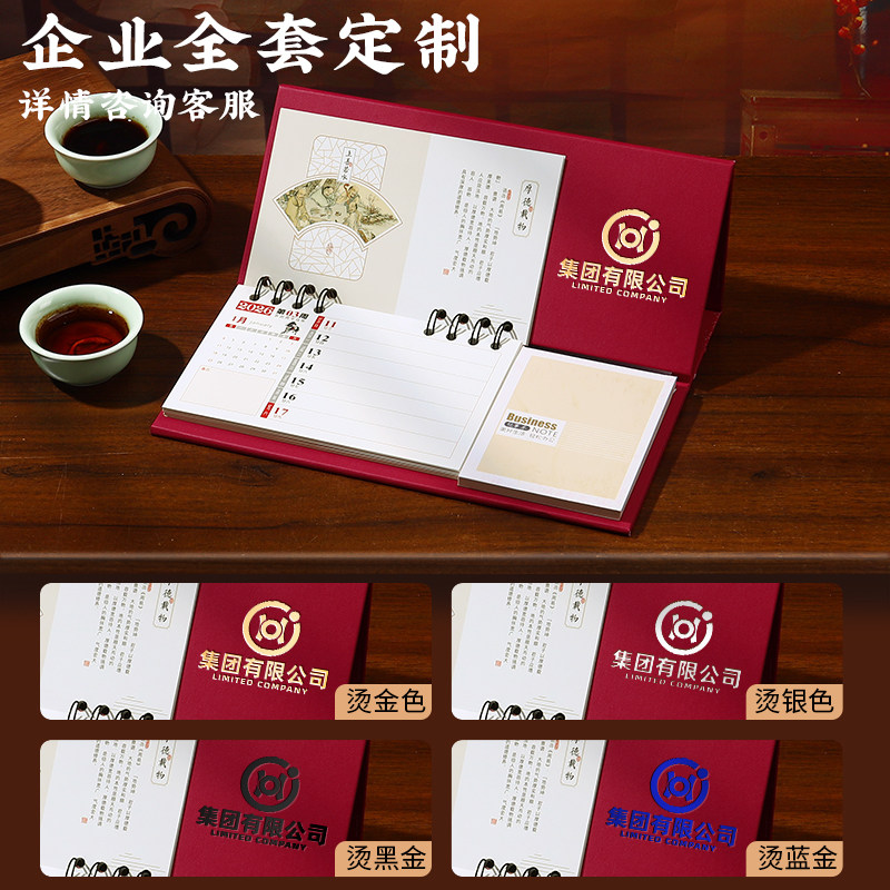 周历2026年烫金台历定制日程计划本中国风喜庆创意桌面摆件月历定做保险公司商务广告工作记事本马年日历订制