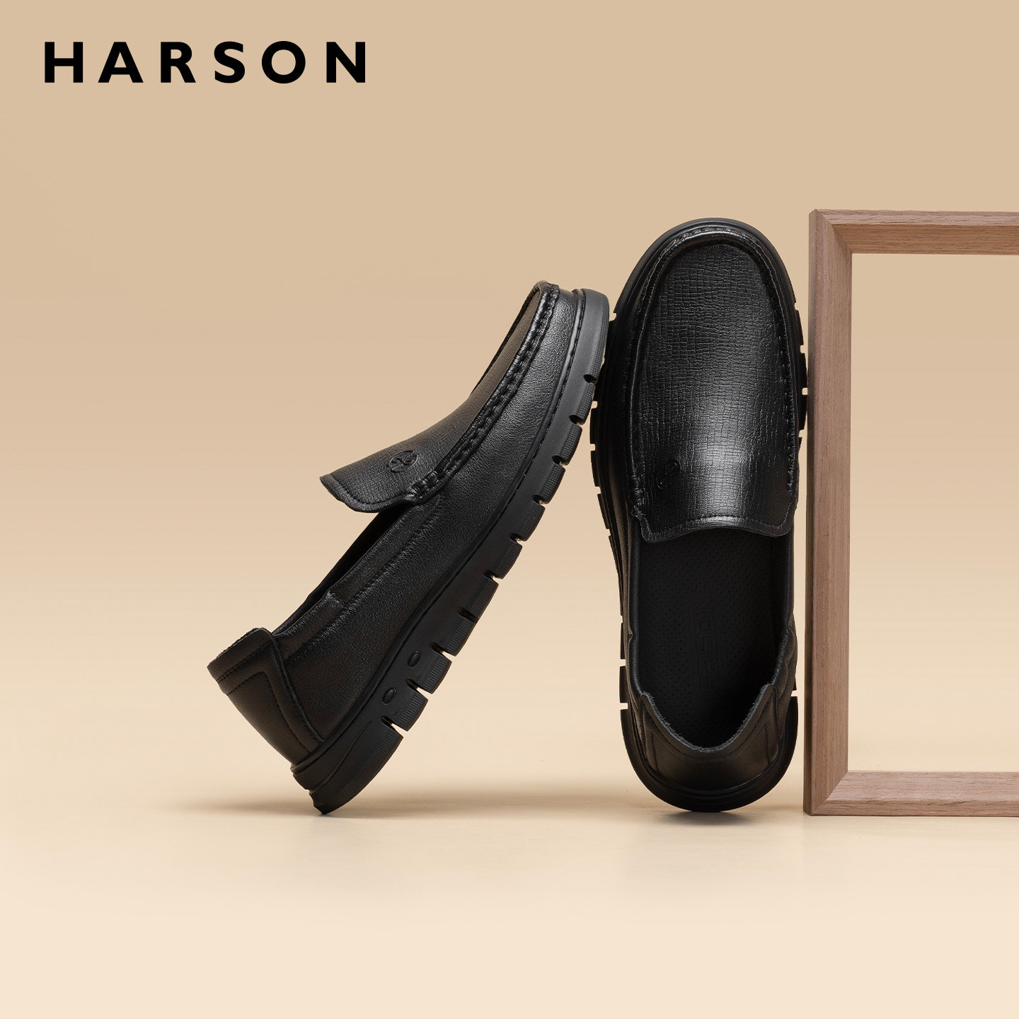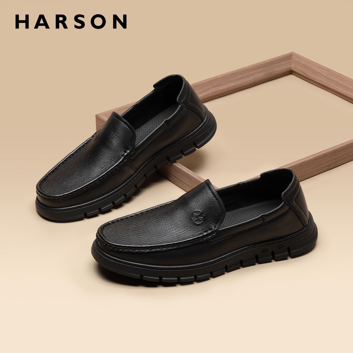 哈森男鞋男士鞋子2026新款真皮爸爸休闲皮鞋一脚蹬乐福软底豆豆鞋