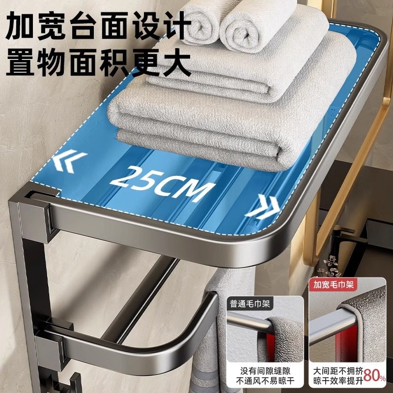 免打孔枪灰毛巾置物架卫生间太空铝浴巾架浴室卫浴五金挂件套装