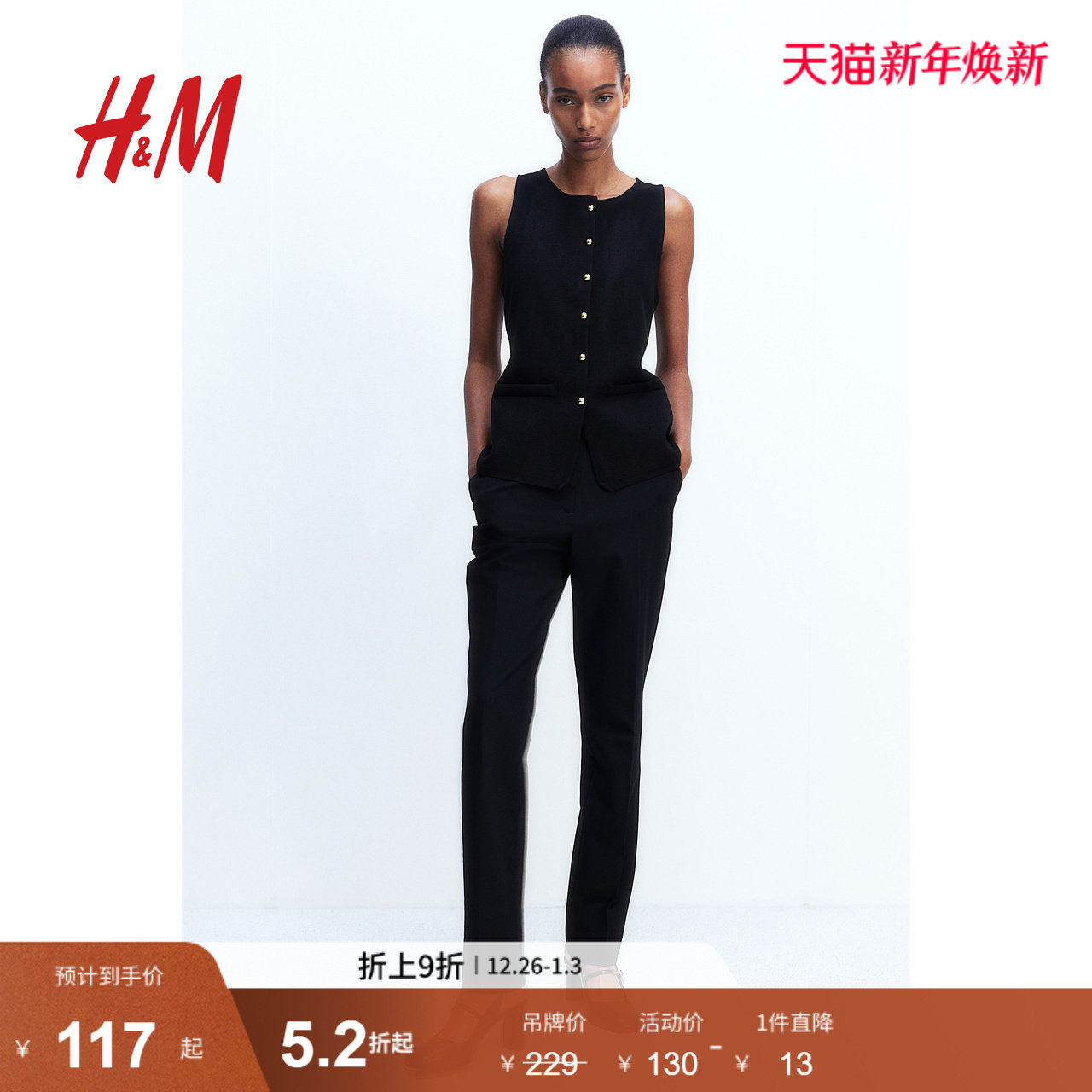 HM女装背心吊带冬季修身针织金属纽扣圆领背心1249215