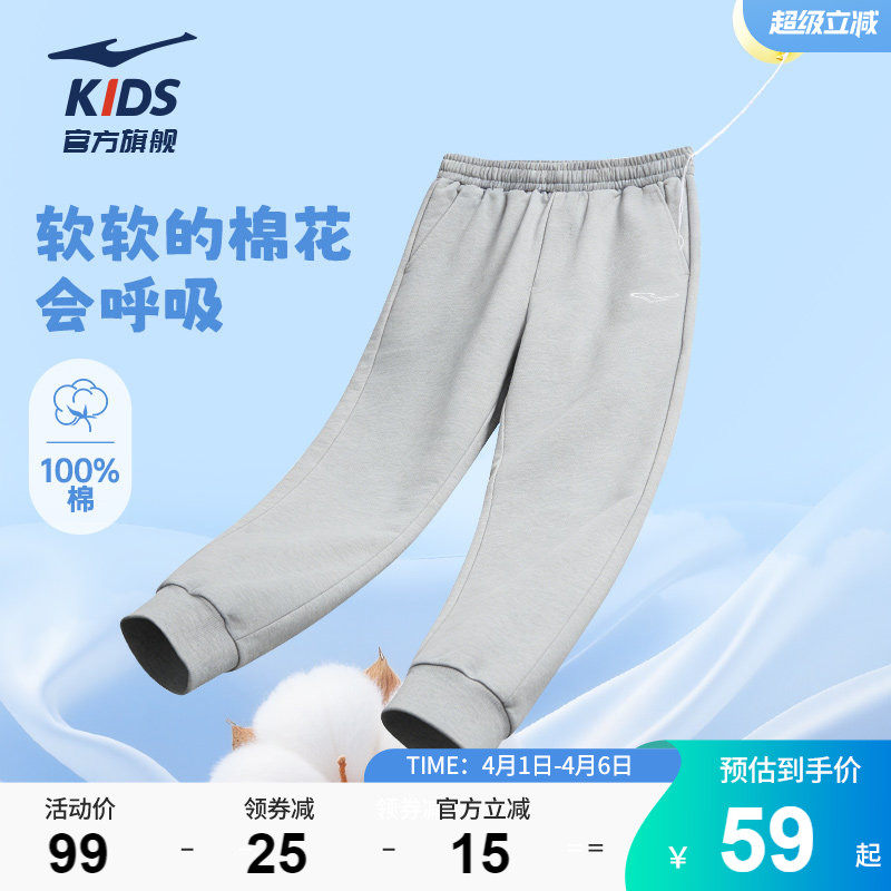 鸿星尔克童装儿童运动裤子春季长裤中大童卫裤男童青少年纯棉裤子