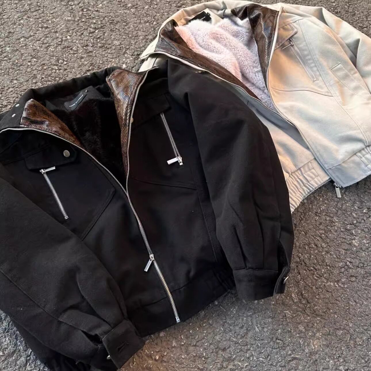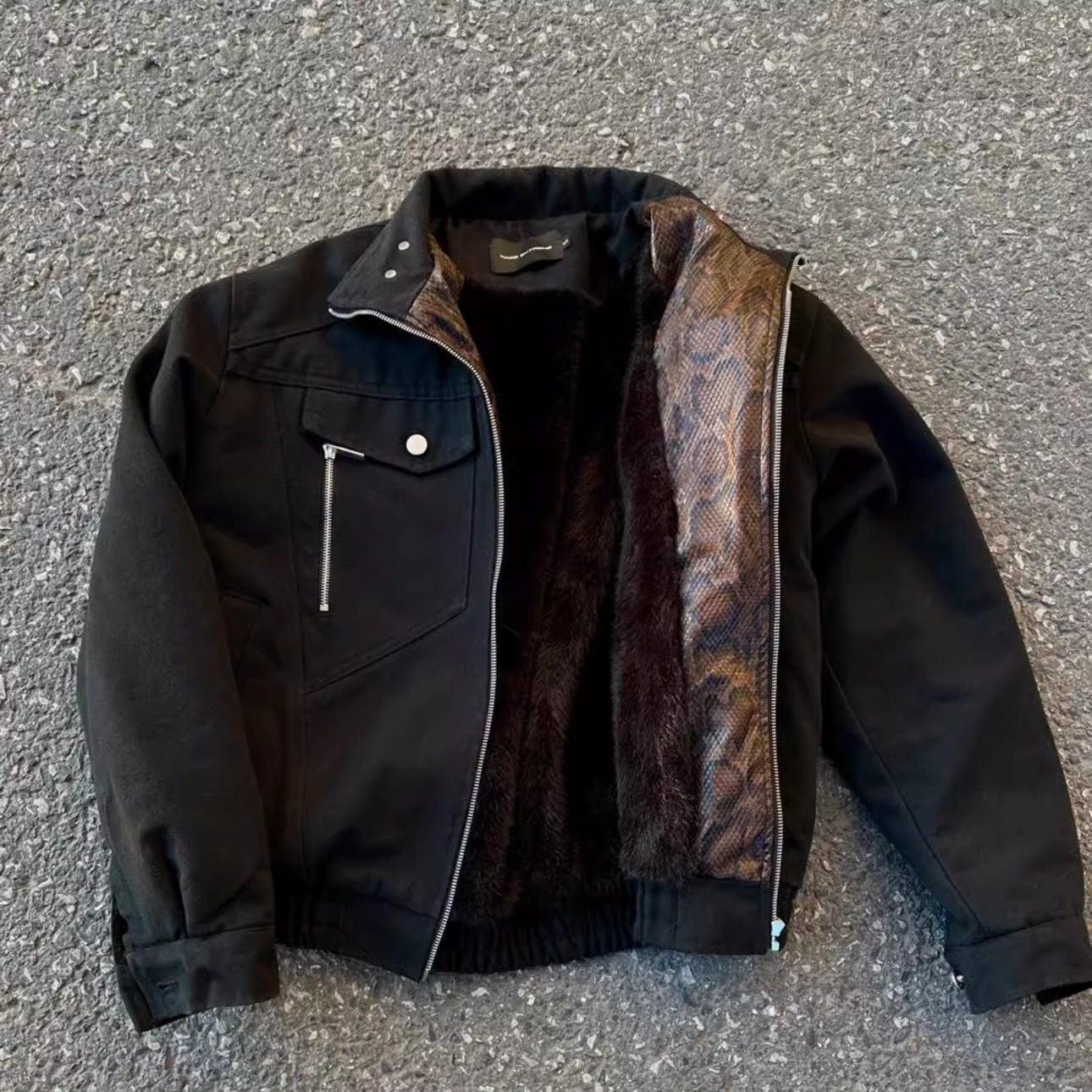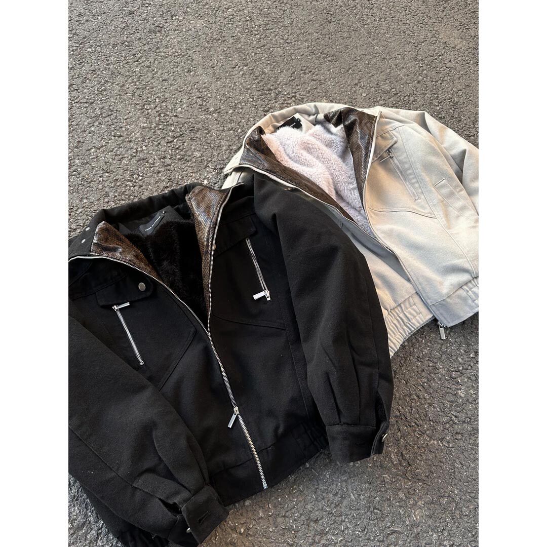 EME【蛇年限定】军布座山蟒毛领剪裁解构加绒加厚宽松夹克外套潮