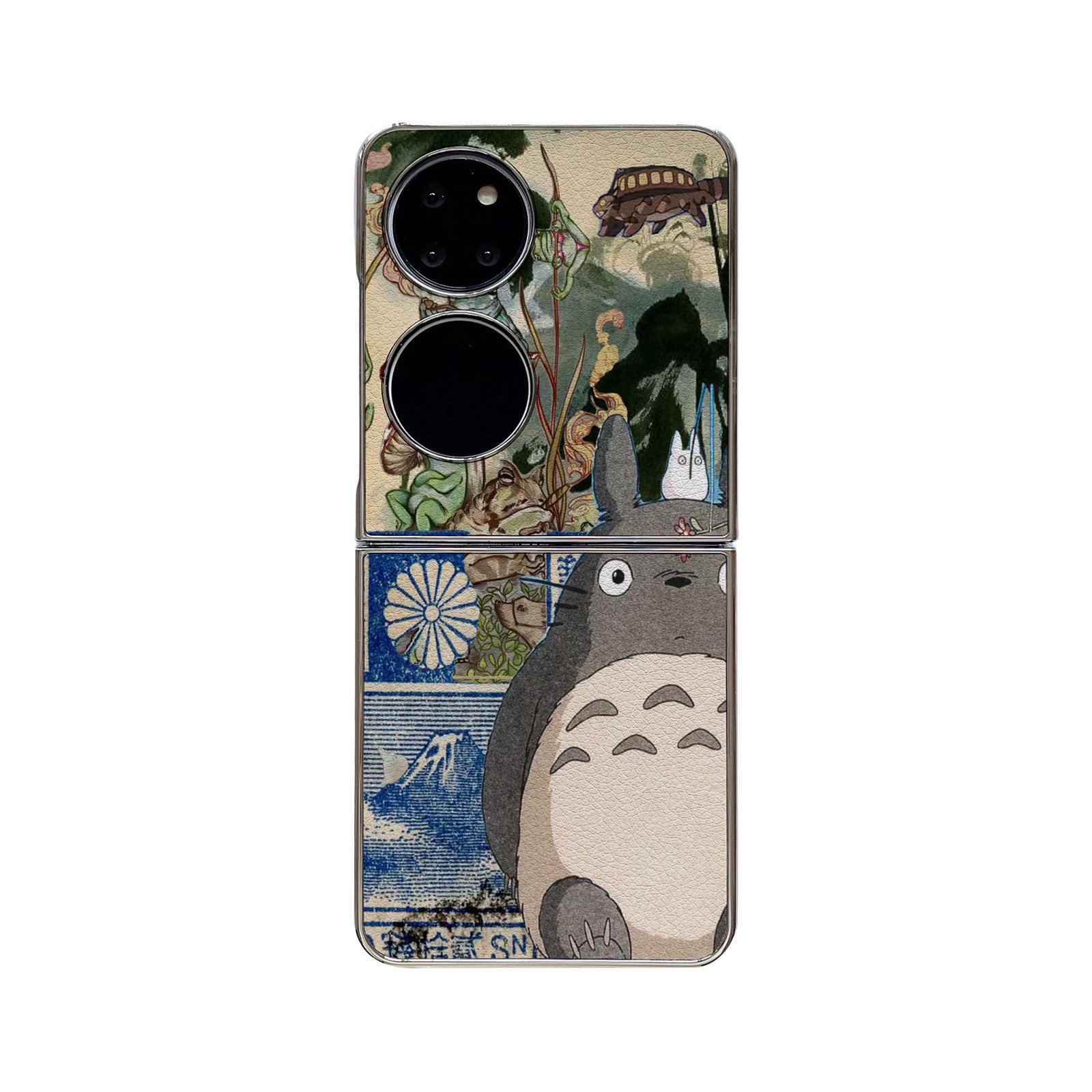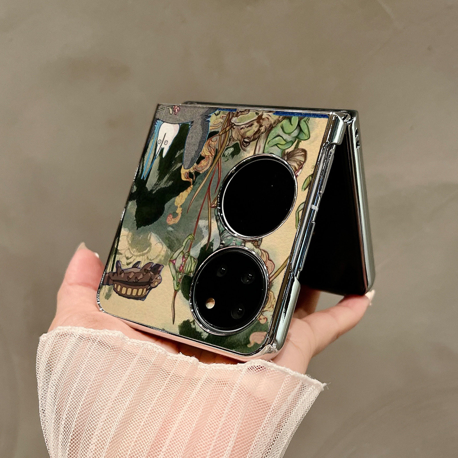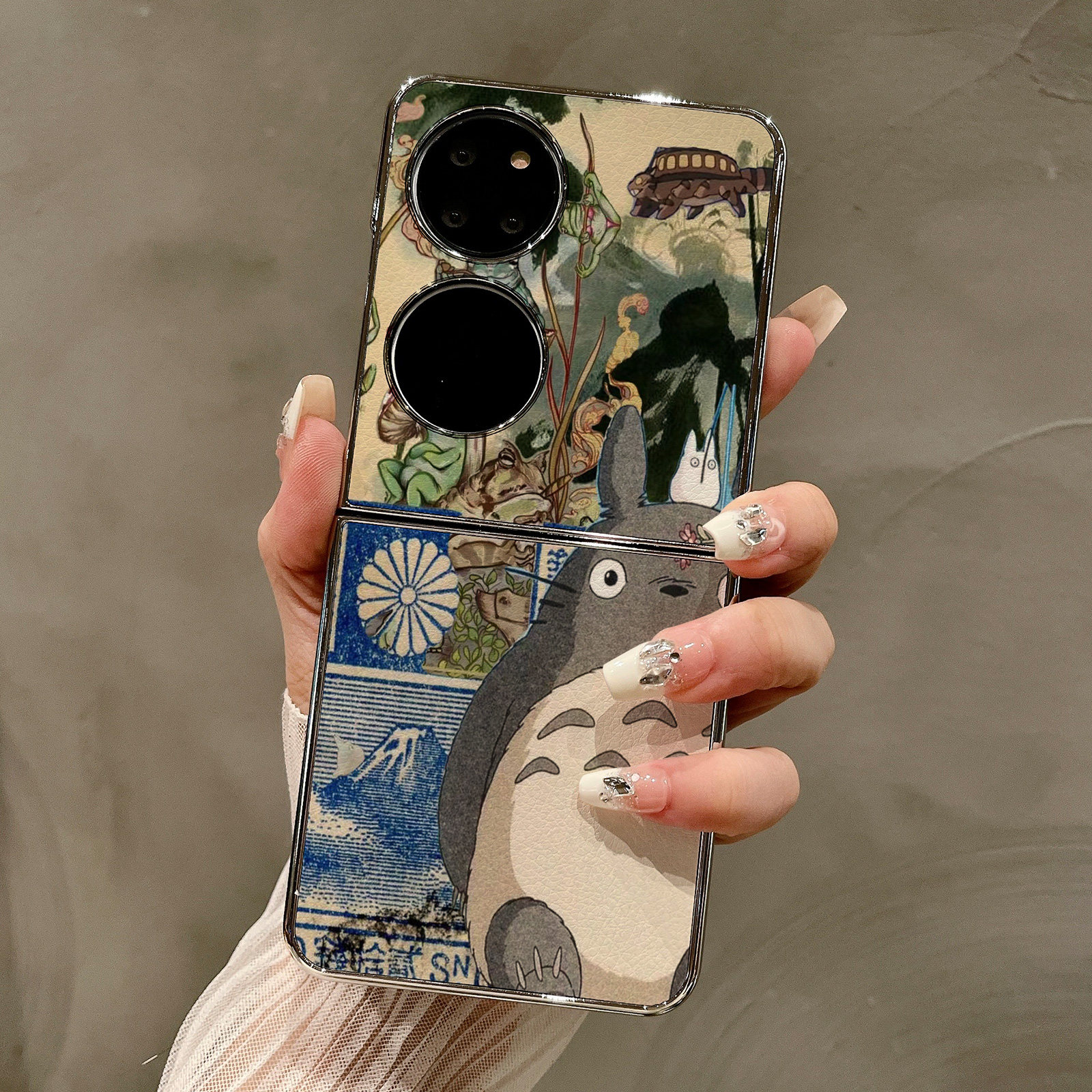 热瓜适用华为P50pocket手机壳Pocket2折叠屏保护套电镀报纸卡通龙猫银边新款pockets创意高档翻盖视窗全包套