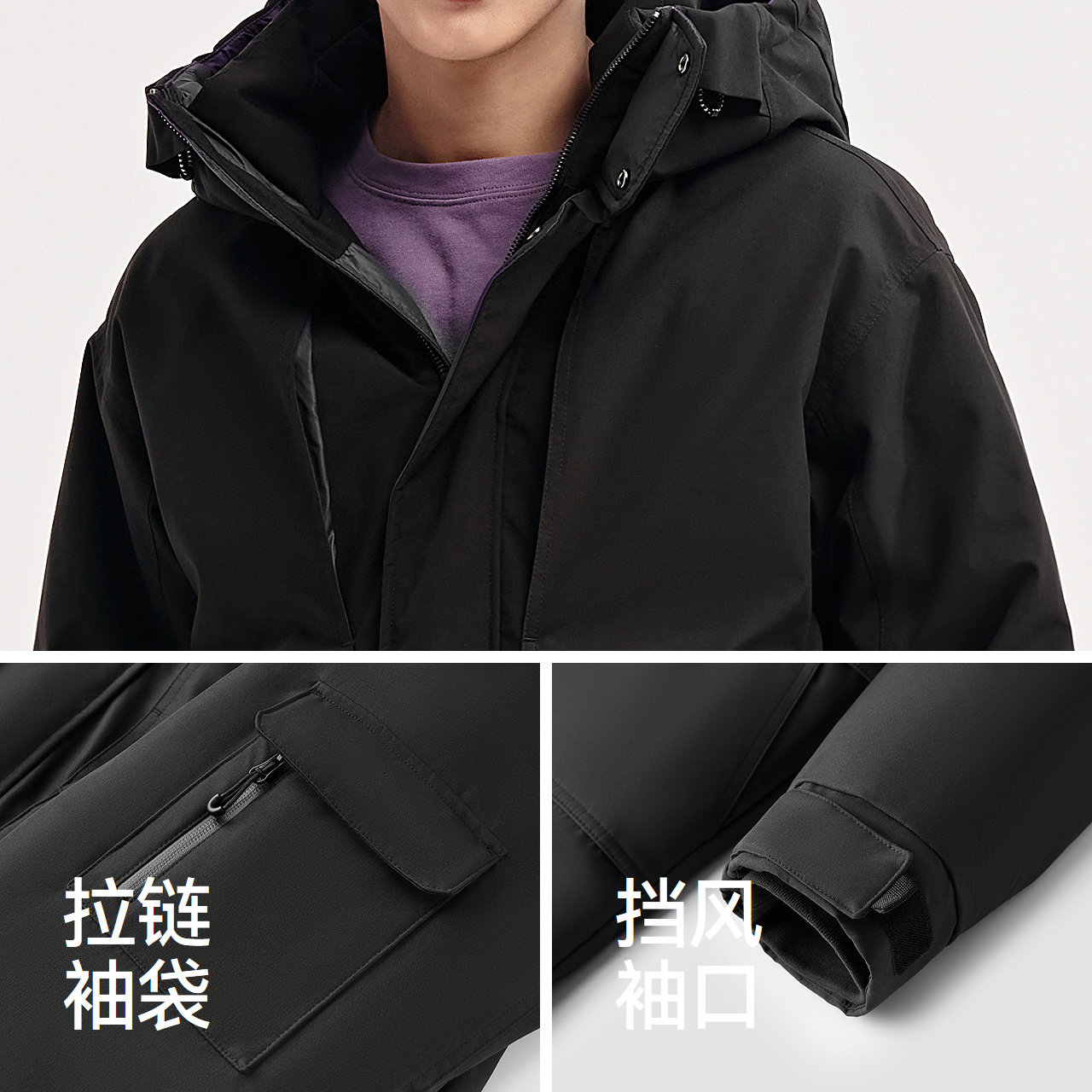 森马羽绒服男冬装80绒子防风三防外套中长款宽松连帽上衣户外通勤