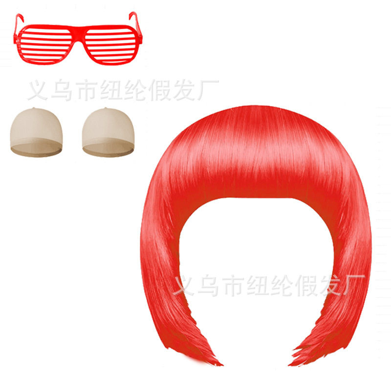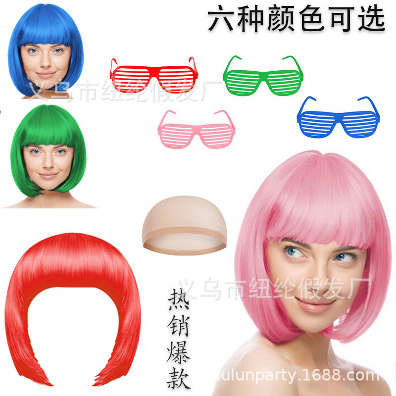 欧美多彩多色bob假发高温丝头套波波头齐刘海逼真短发cosplay假发