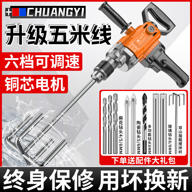 创一多功能打灰机电钻搅拌机飞机钻大功率油漆腻子粉水泥搅灰机