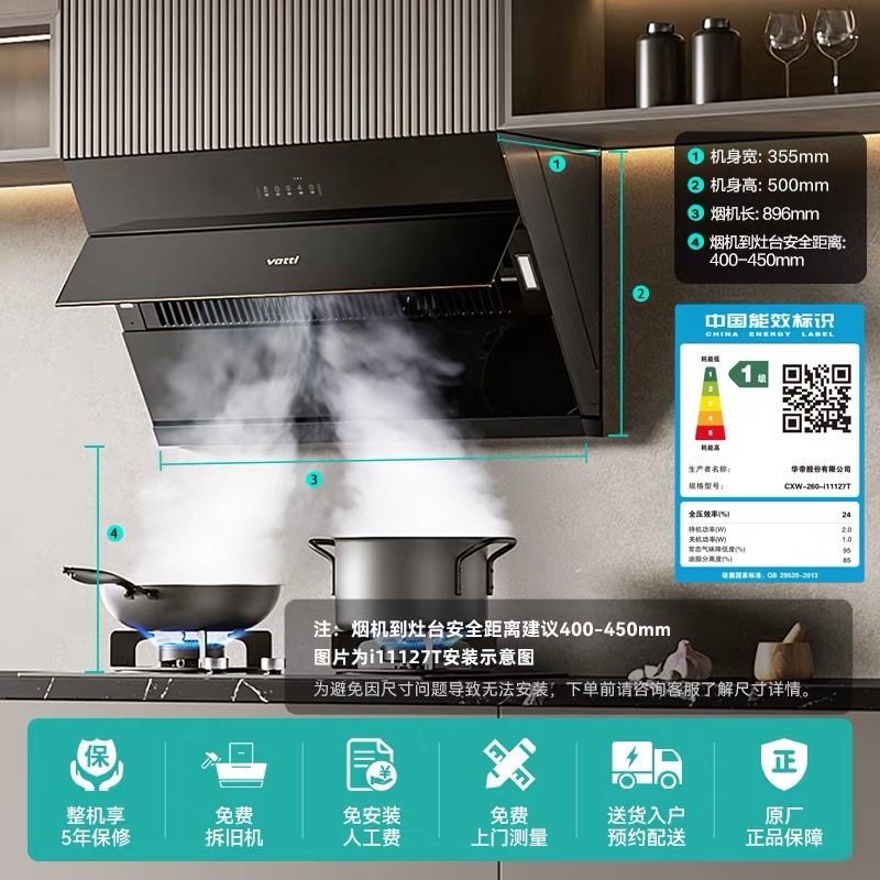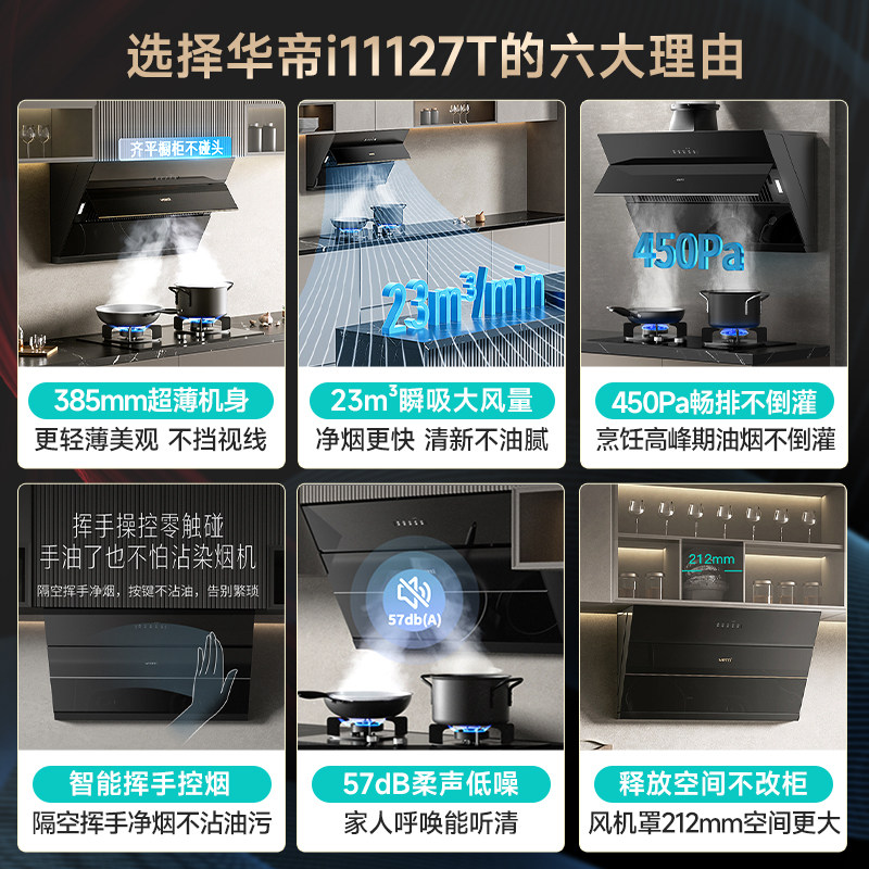 华帝油烟机i11127T侧吸家用厨房大吸力抽油烟机燃气灶套餐旗舰店
