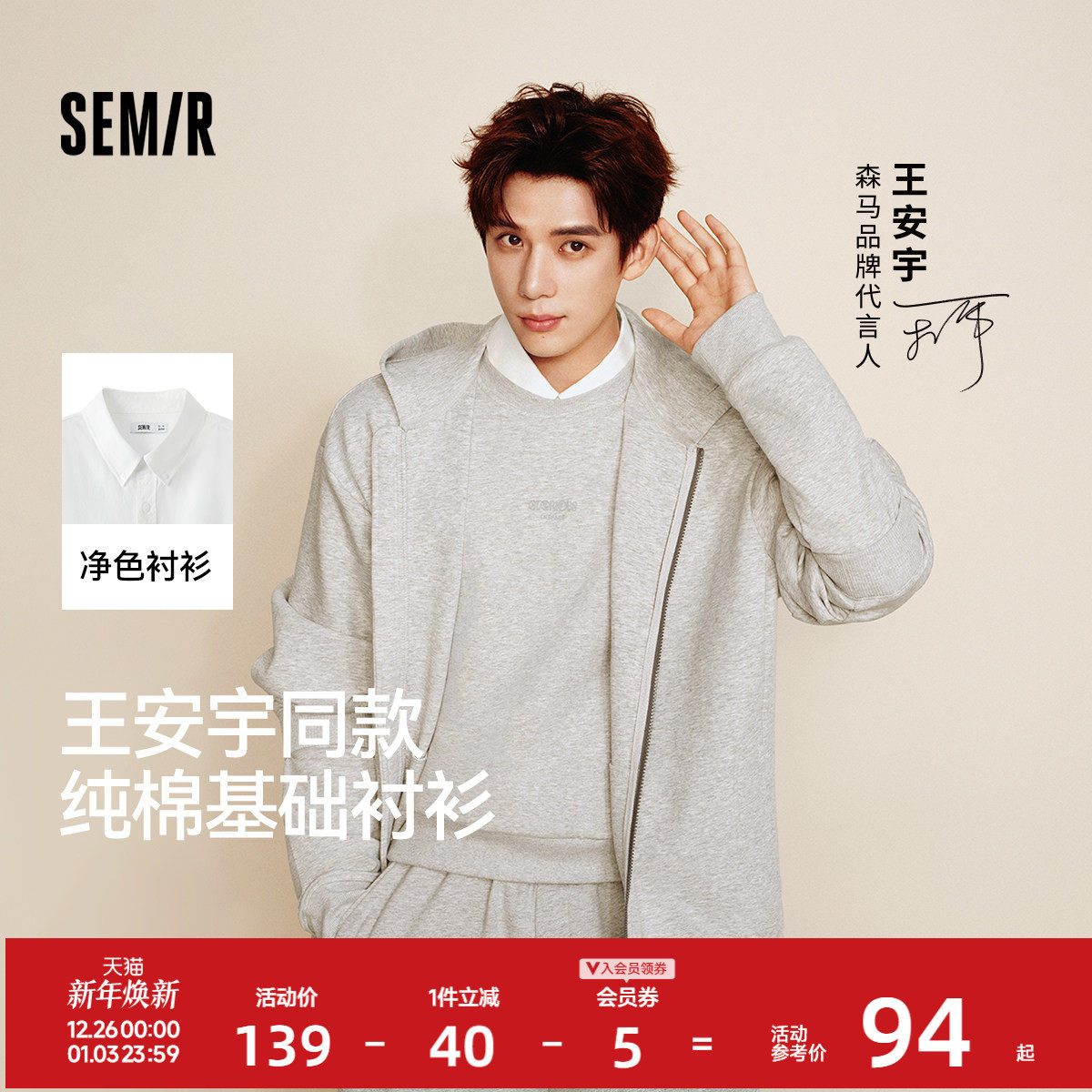 王安宇同款森马长袖衬衫男纯棉2025春秋新款通勤休闲上衣商务衬衣