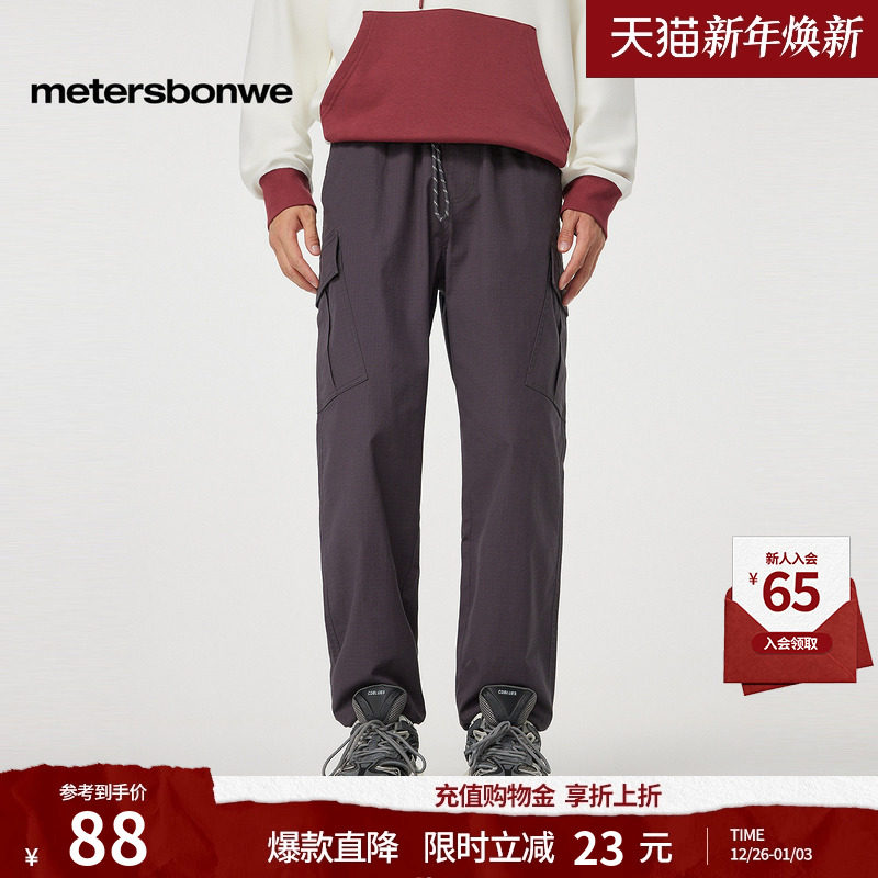 美特斯邦威休闲裤秋冬季运动肌理面料工装口袋慢跑裤长裤