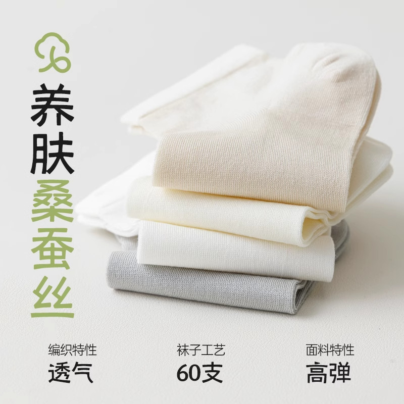 桑蚕丝袜子女夏季薄款短袜吸汗透气棉袜女士春秋防臭袜夏天中筒袜