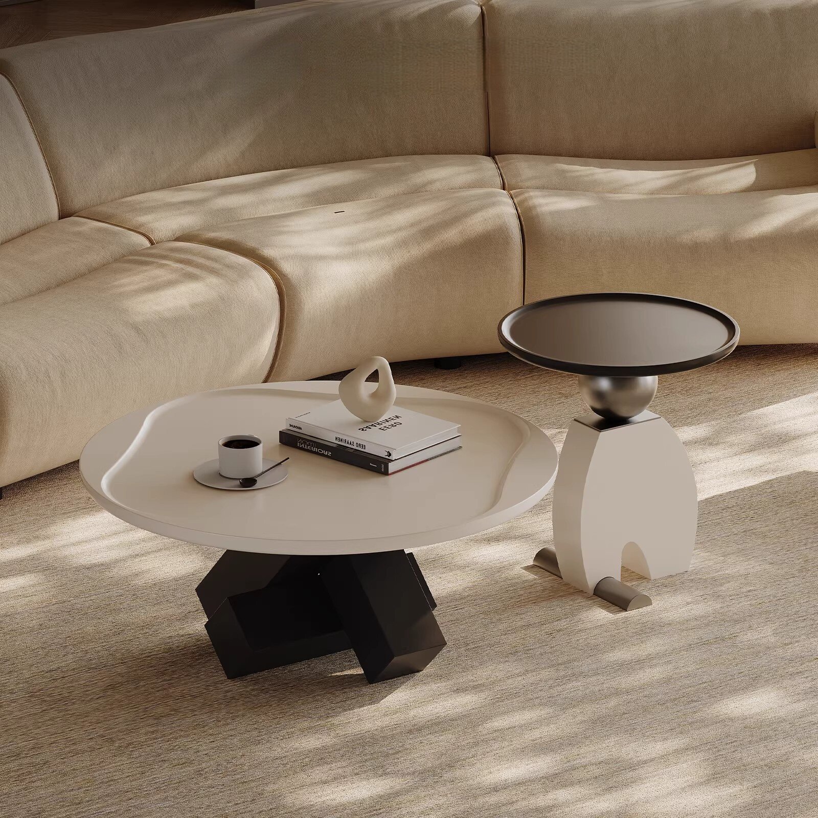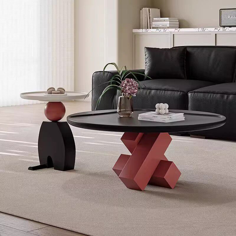 意式极简茶几组合圆形小户型艺术客厅家用现代轻奢多巴胺奶油玻璃