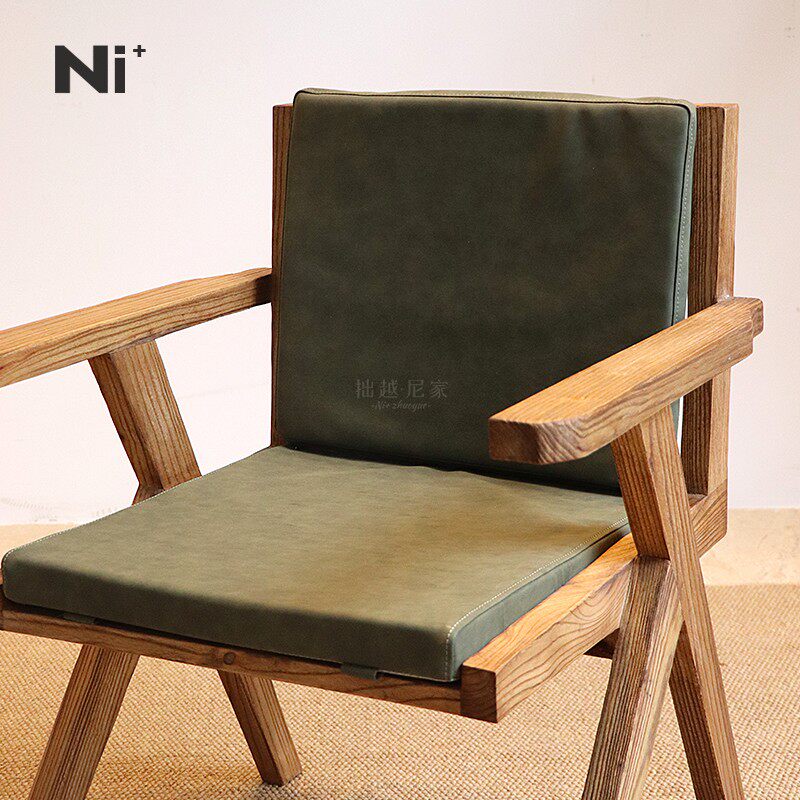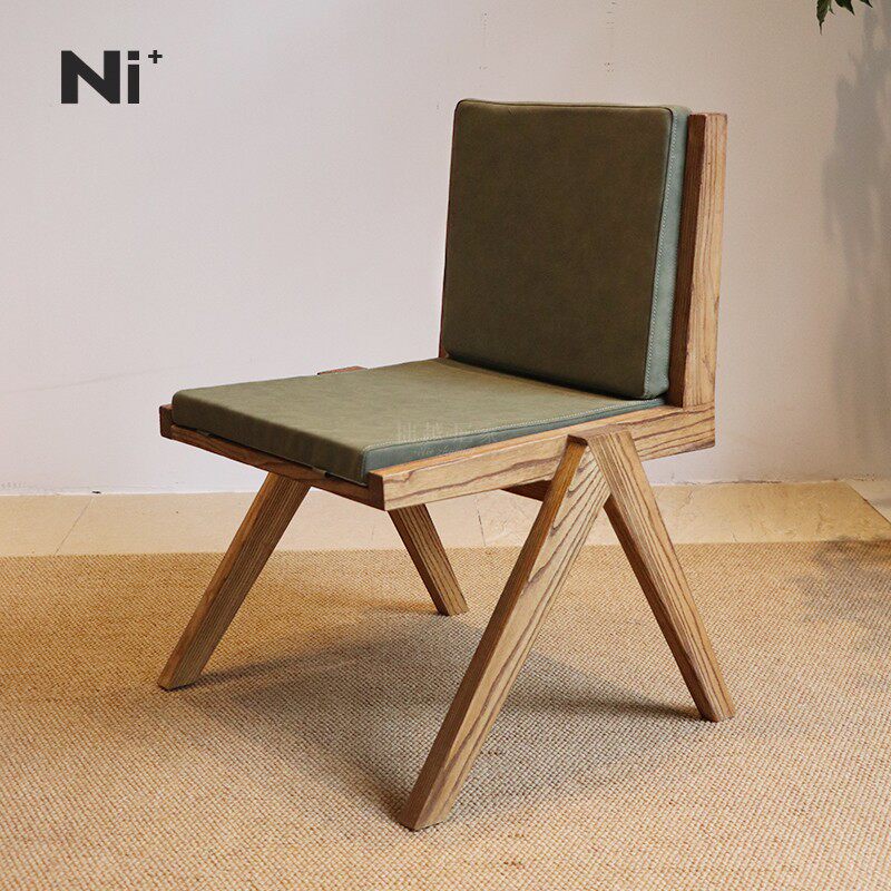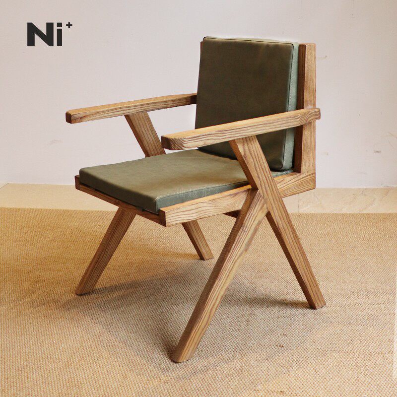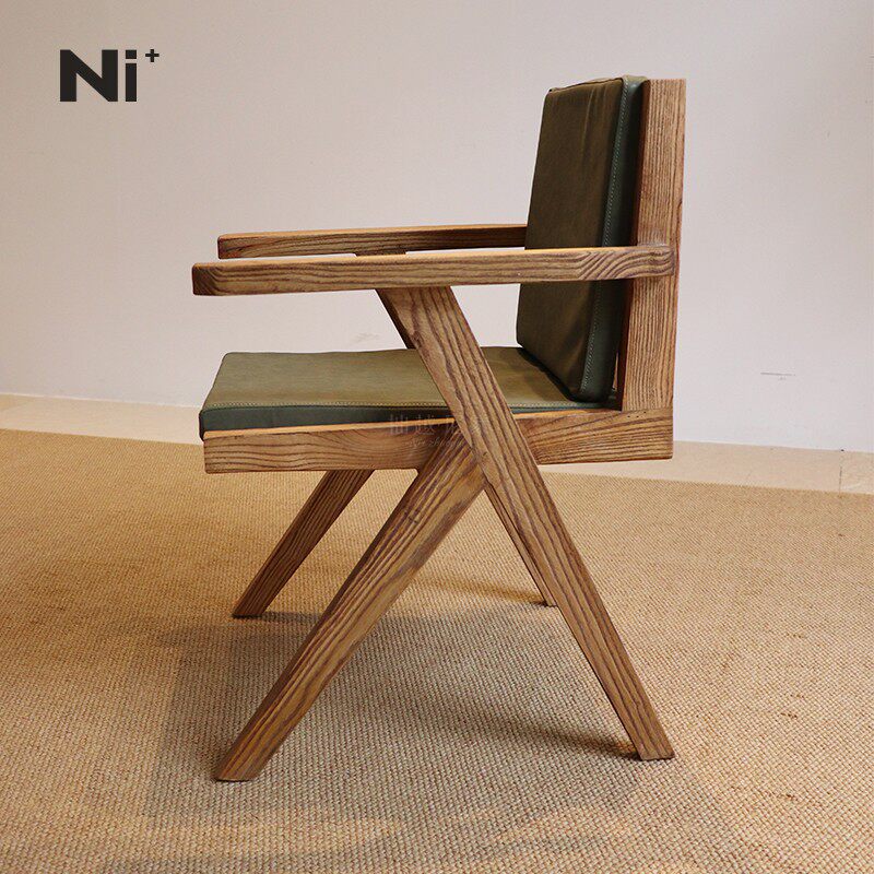 Ni+尼家昌迪加尔椅实木餐椅中古风扶手原木书椅北欧椅子家用餐椅