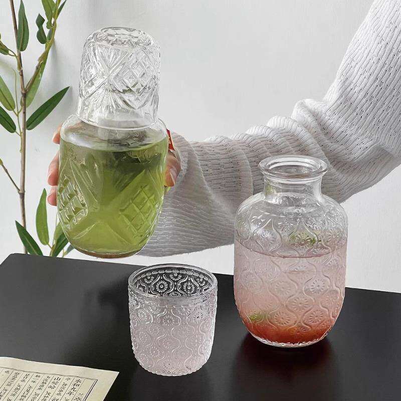 【一壶一杯】复古浮雕玻璃杯海棠花冷水壶ins风高颜值茶壶果汁杯