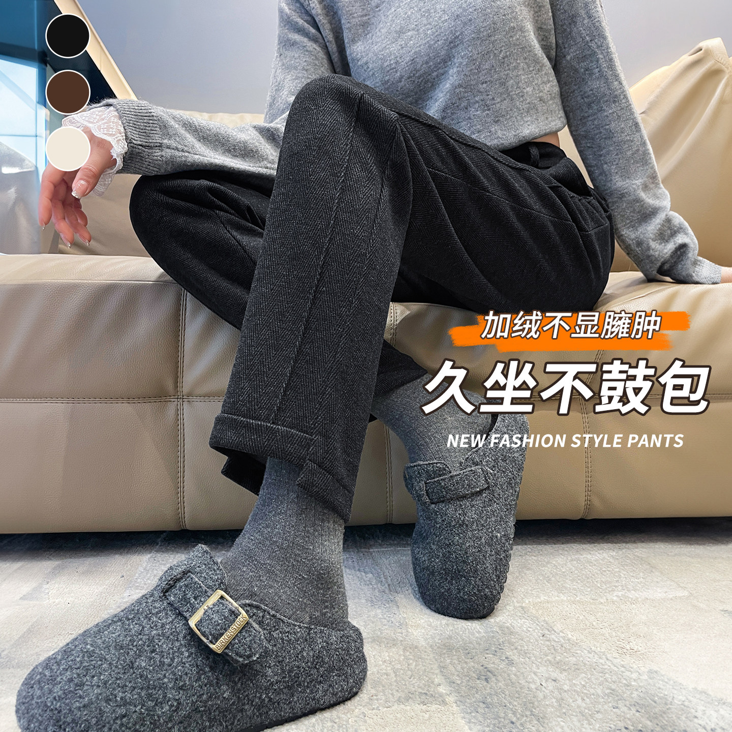 魔悦加绒糯米裤2025秋冬新款口袋显瘦休闲裤