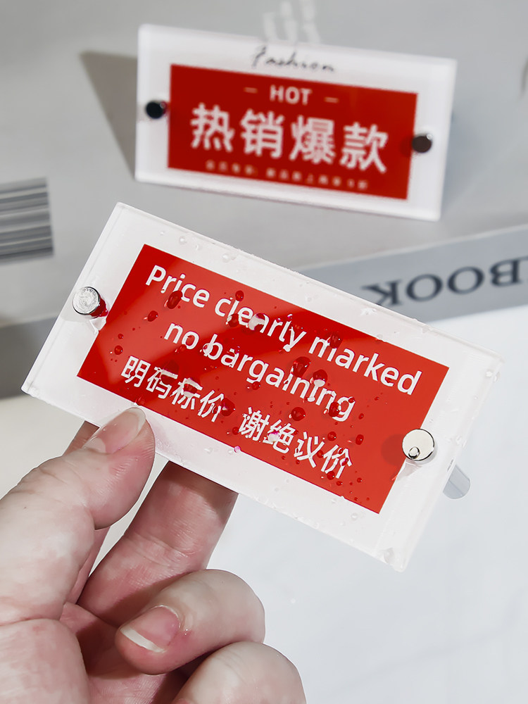 亚克力商品标价签柜台服装新品上市化妆品牌店长推荐热销爆款展示牌标签牌茶烟酒明码实价谢绝议价温馨提示牌