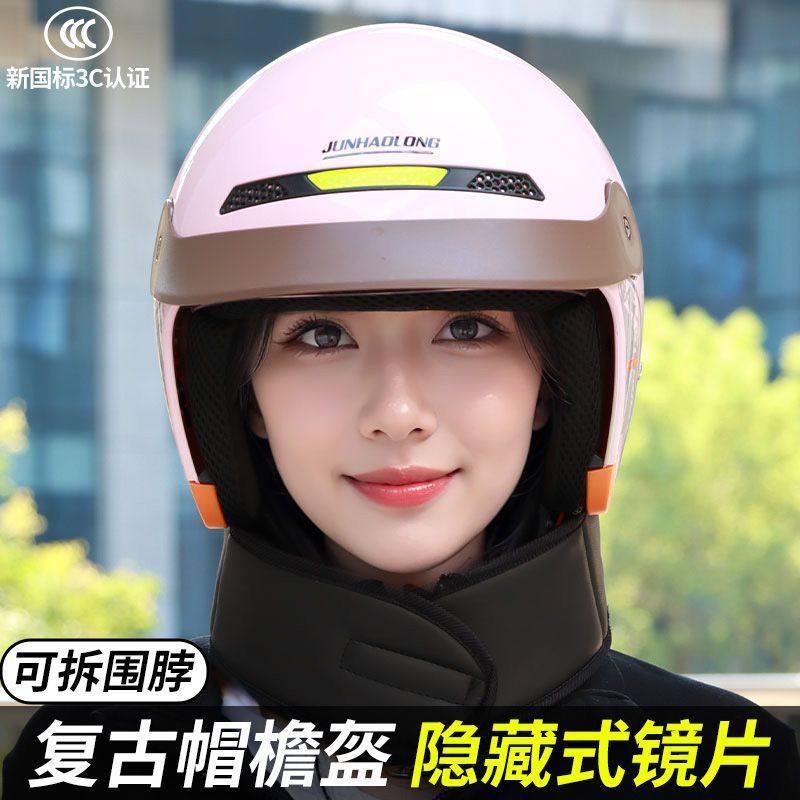 3C认证电动车头盔女士冬季保暖摩托电瓶车复古四季通用冬天安全帽