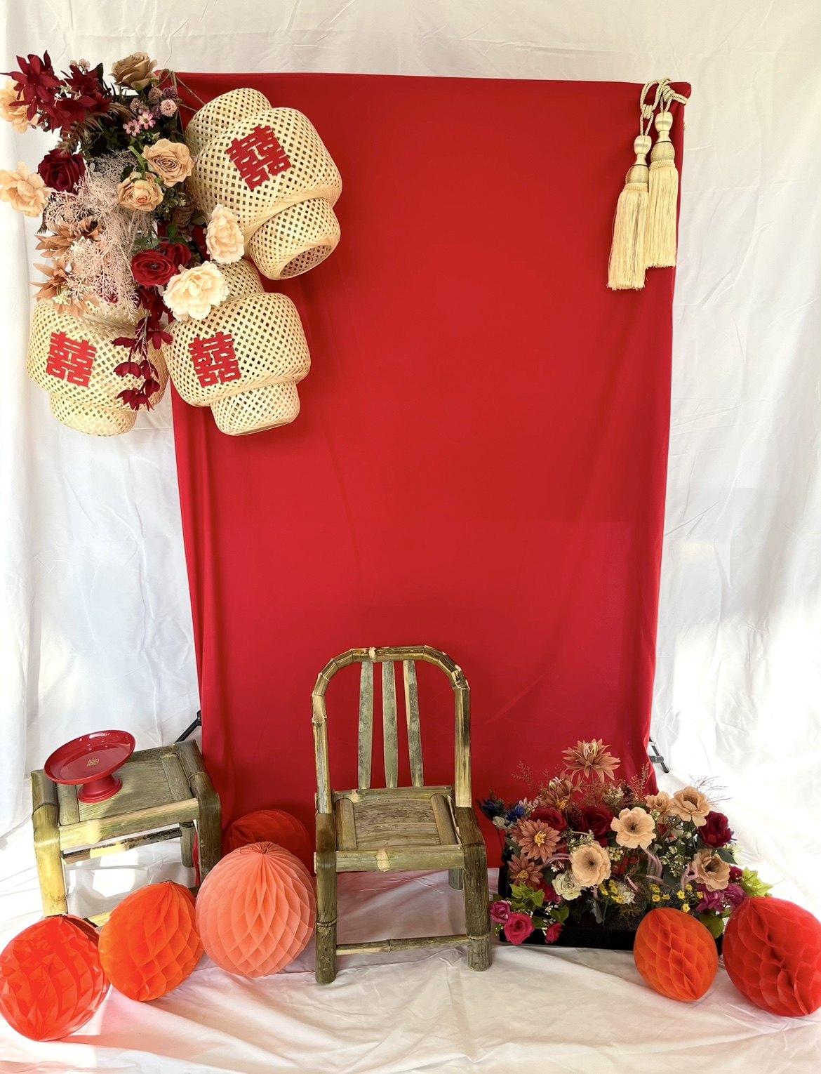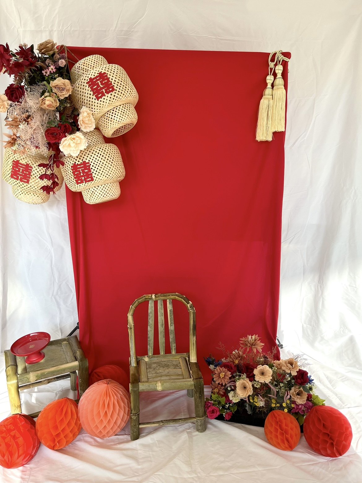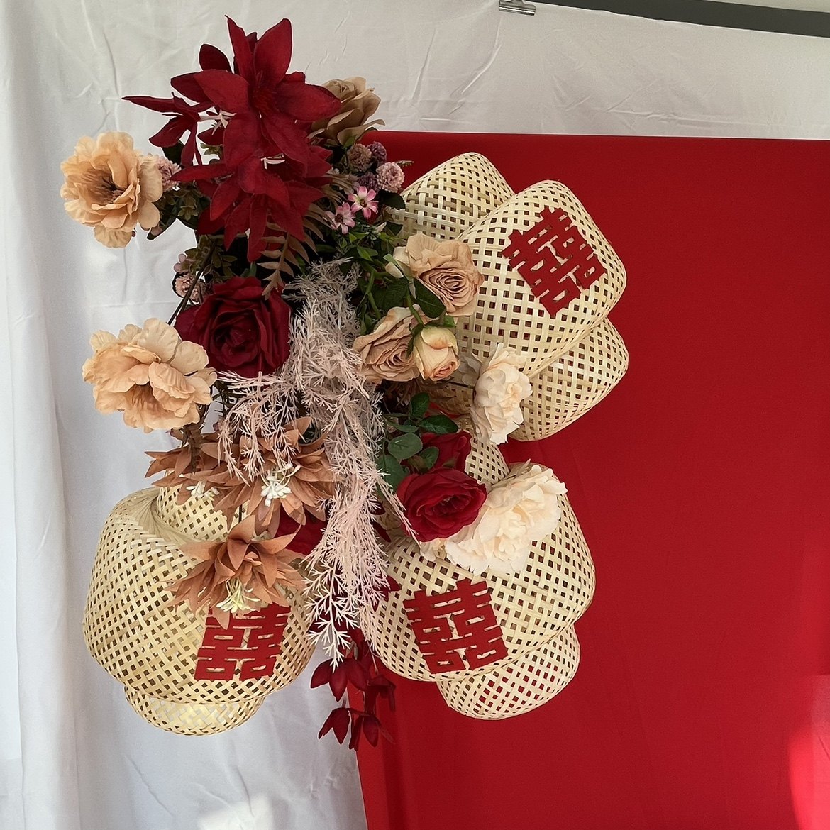 新中式婚纱摄影喜嫁风拍摄道具藤编镂空灯笼红背景装饰花蜂窝灯笼