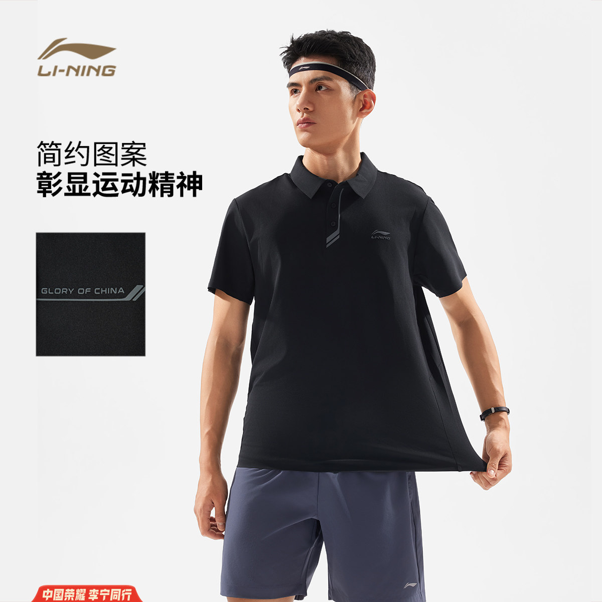 李宁荣耀系列短袖POLO衫男士官方新款春夏翻领T恤针织上衣运动服