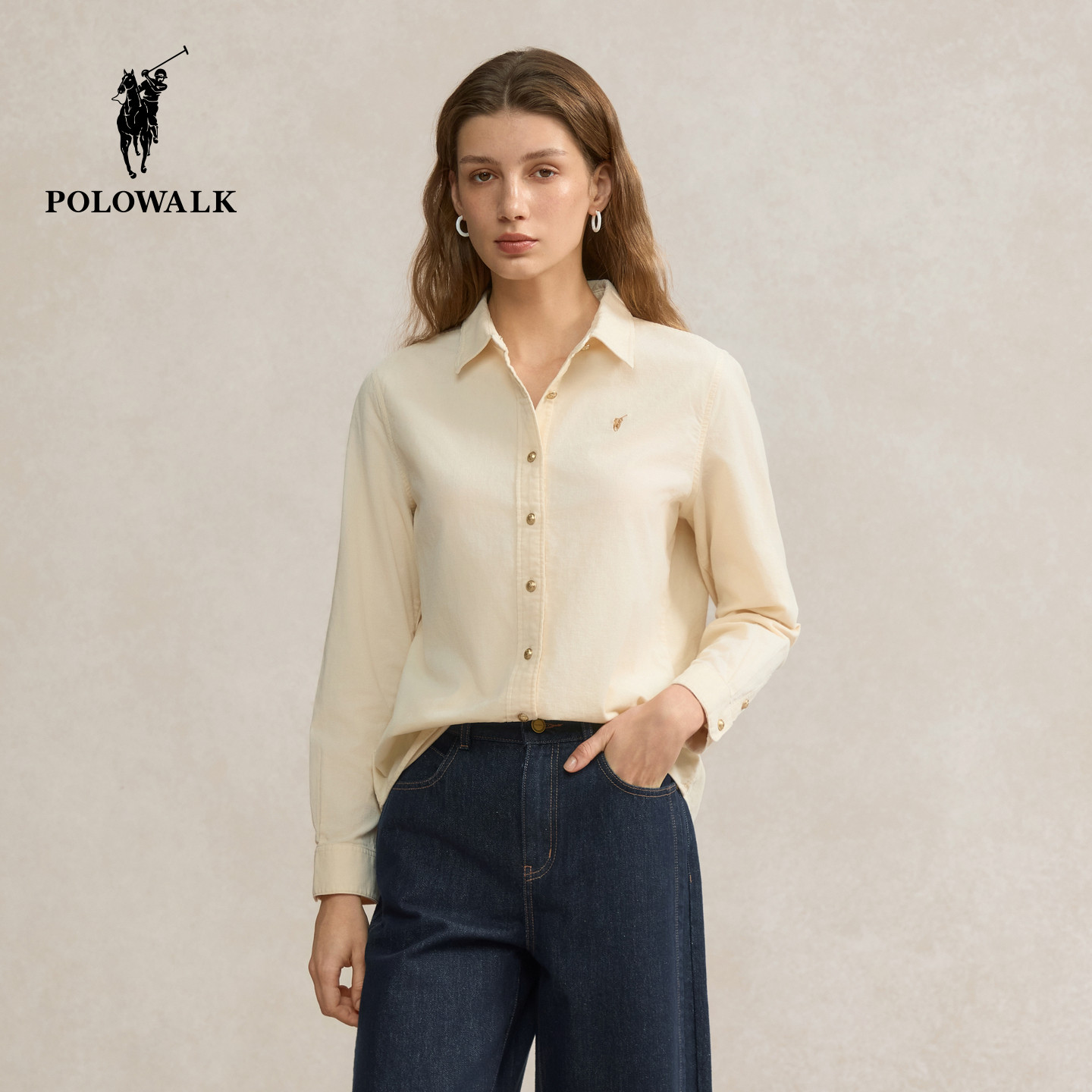 POLOWALK纯棉灯芯绒衬衫女士百搭衬衣外套长袖内搭春季新款