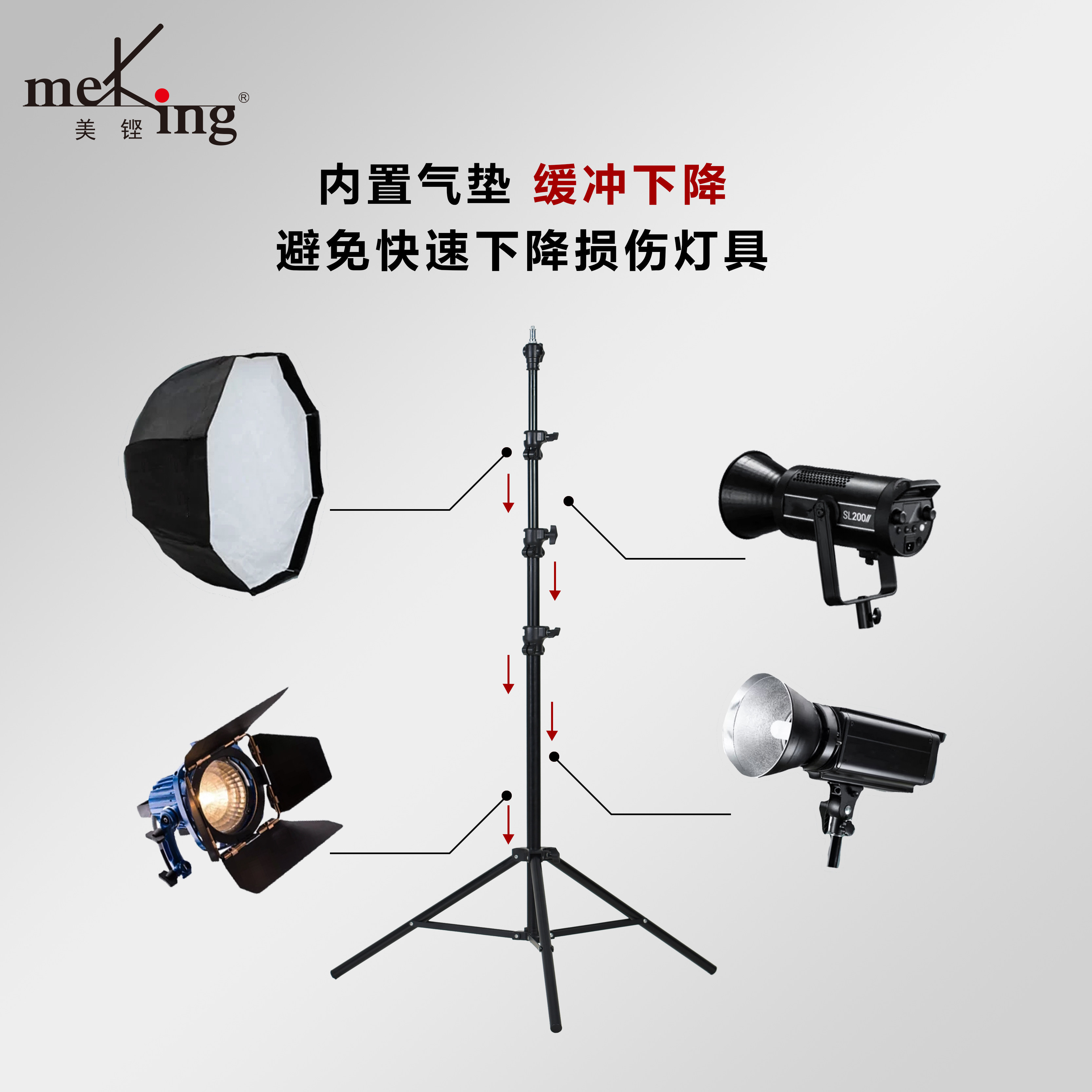 Meking美铿DZ系列气垫灯架户外便携折叠伸缩三脚架补光灯落地支架