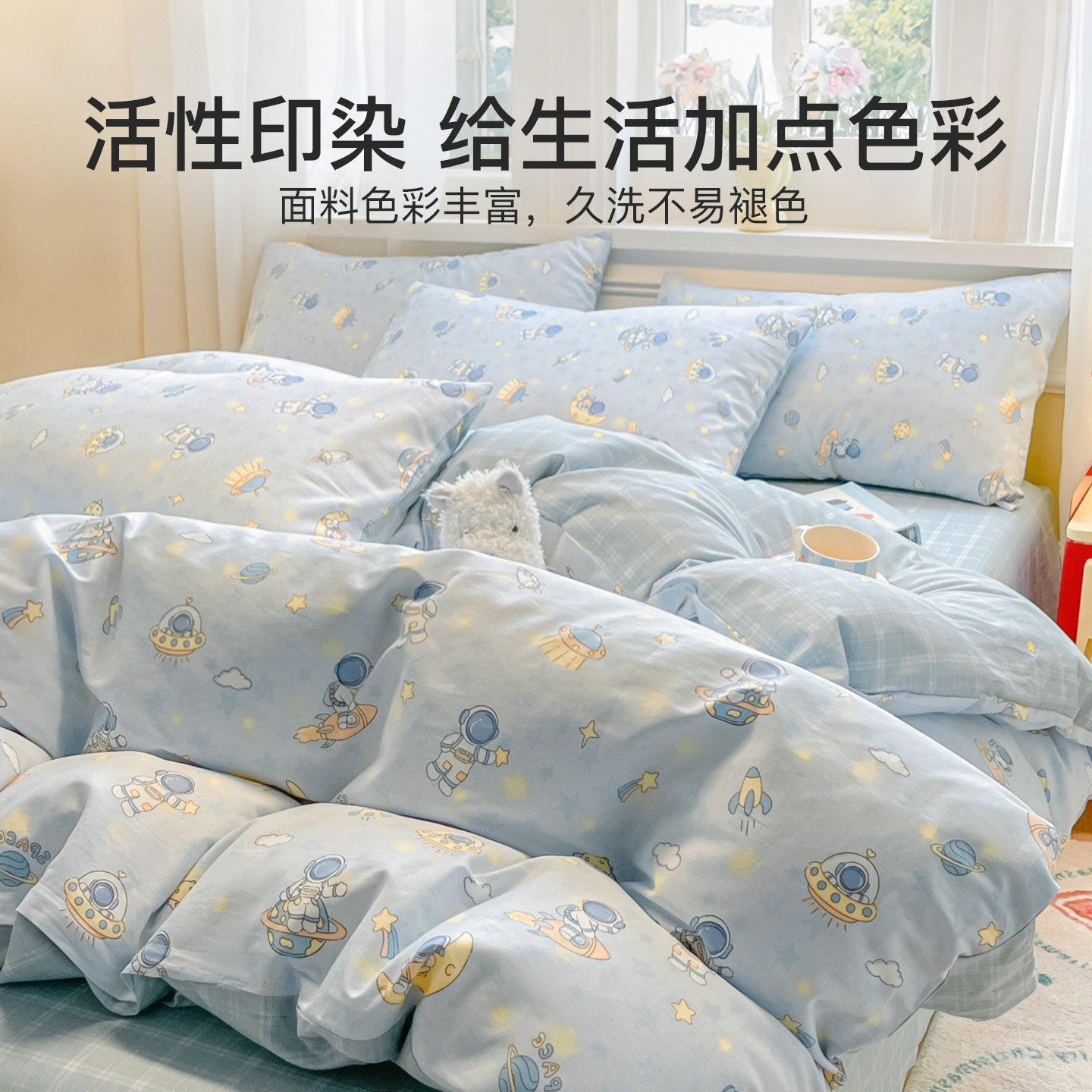 无印良品全棉四件套学生宿舍纯棉卡通儿童被套床单三件套床上用品
