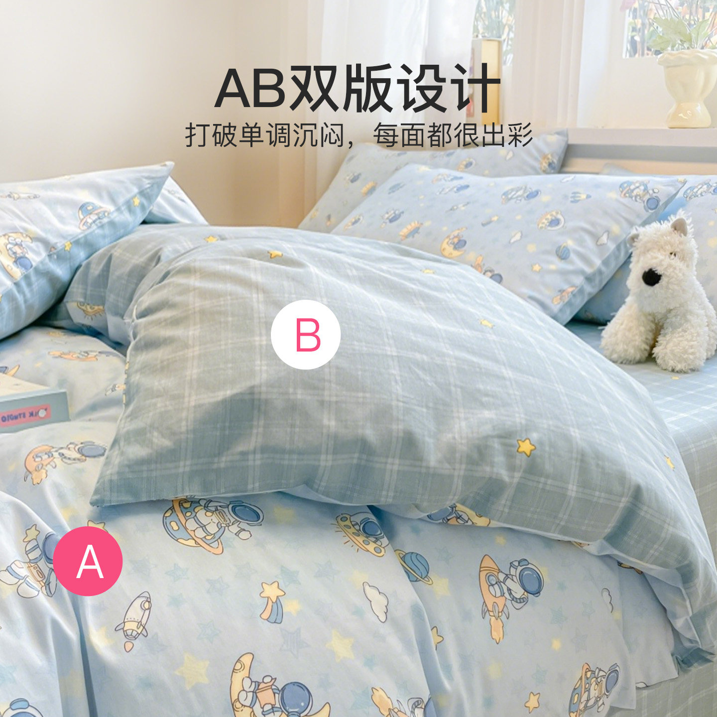 TeenieWeenie全棉水洗棉四件套100纯棉被套床单床笠款床上三件套4