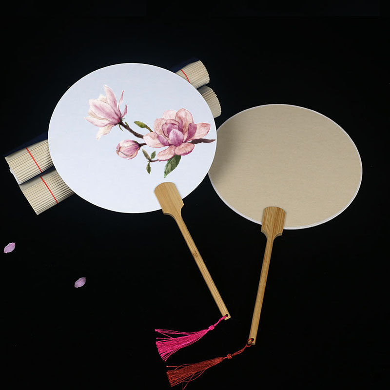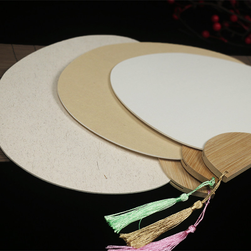 加厚双面宣纸团扇空白纸扇白色半生熟扇面手绘书法国画水彩画diy扇子来图定制古风团扇pvc材料防水漂漆扇批发