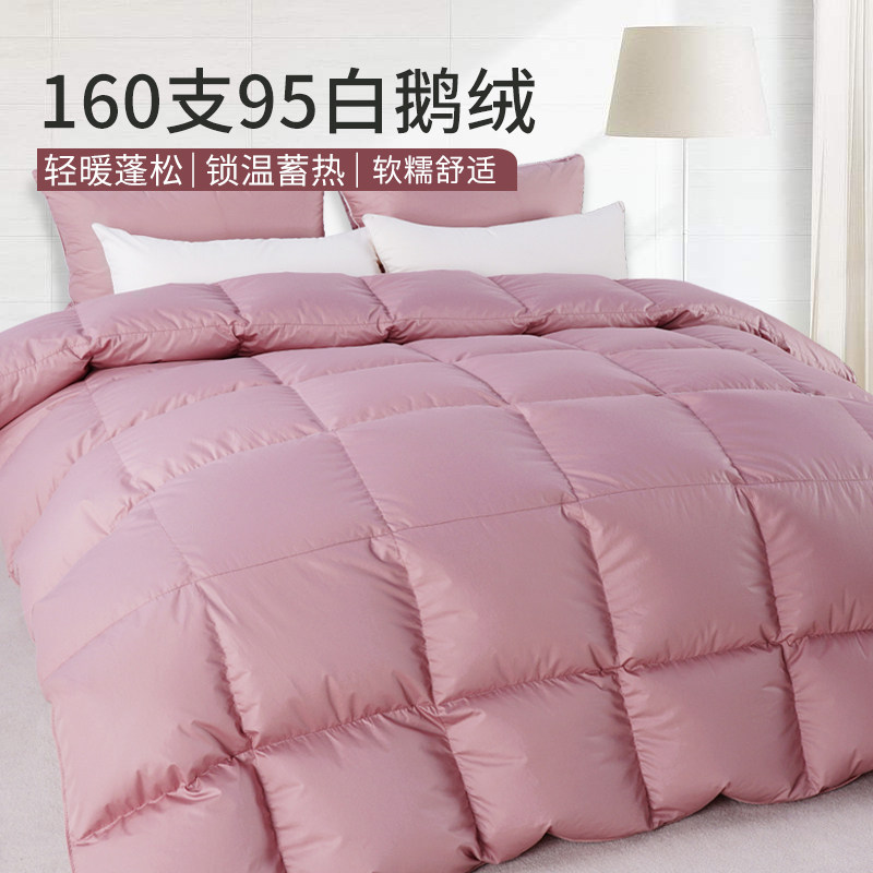 如奕160s纯棉羽绒被95白鹅绒春秋冬被加厚保暖全棉双人鹅绒被结婚