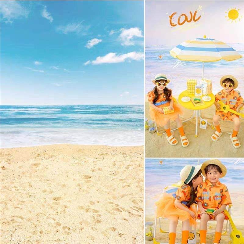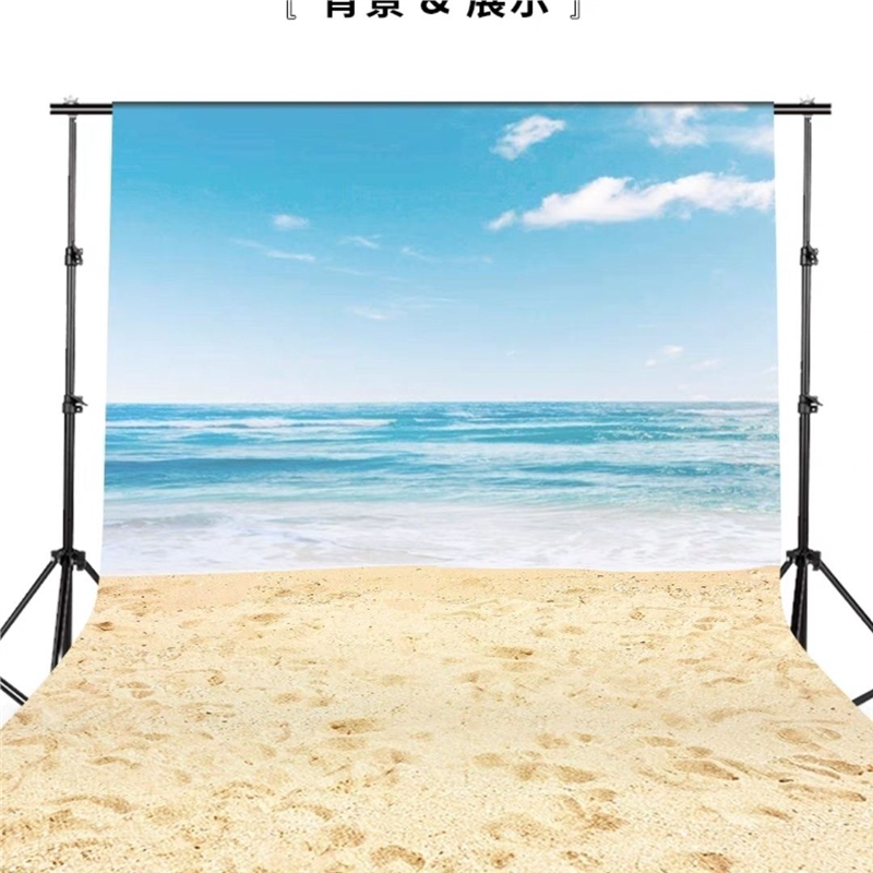 夏日沙滩商拍大海室内海滩影楼儿童婚纱摄影背景布影棚室内海景图