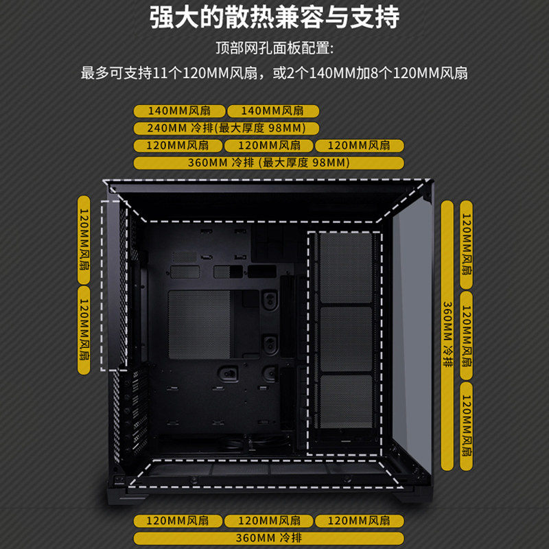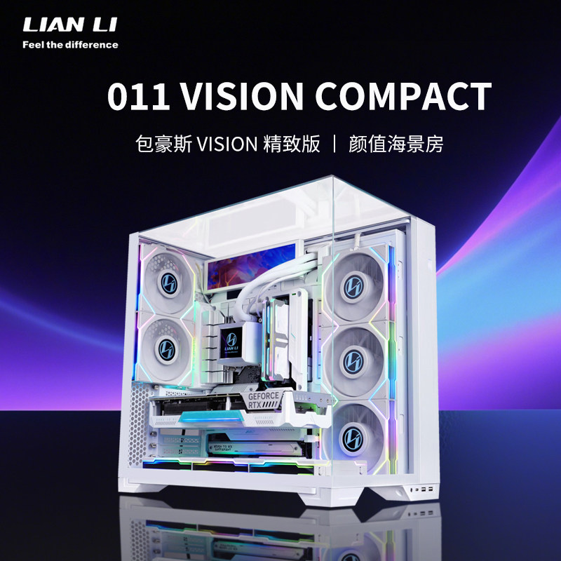 联力包豪斯O11 Vision Compact无边框钢化玻璃台式电脑海景房机箱