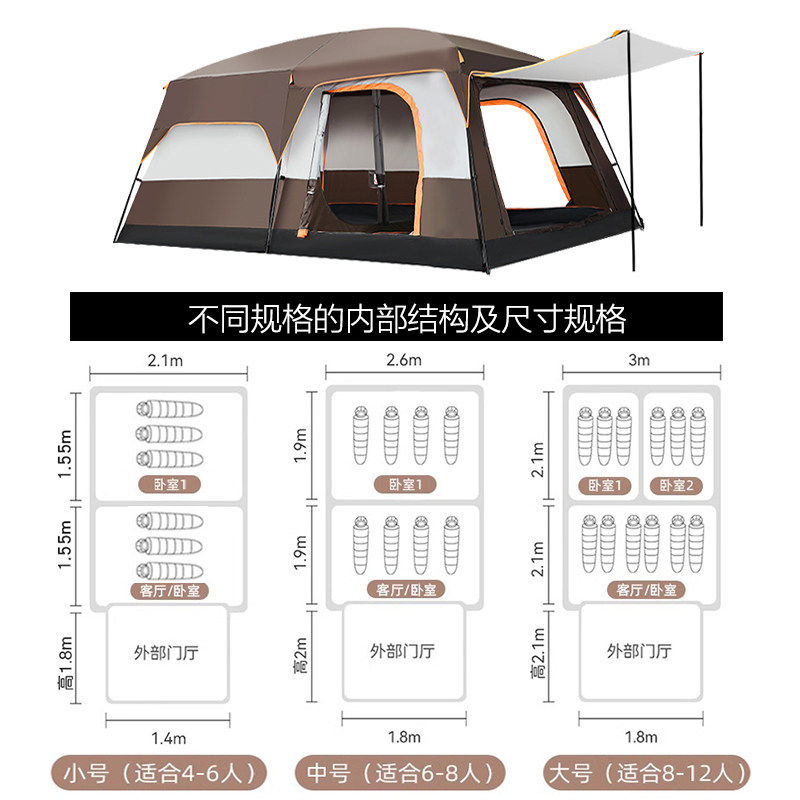 帐篷户外野营过夜两室一厅折叠便携式加厚防雨野外遮阳棚露营装备
