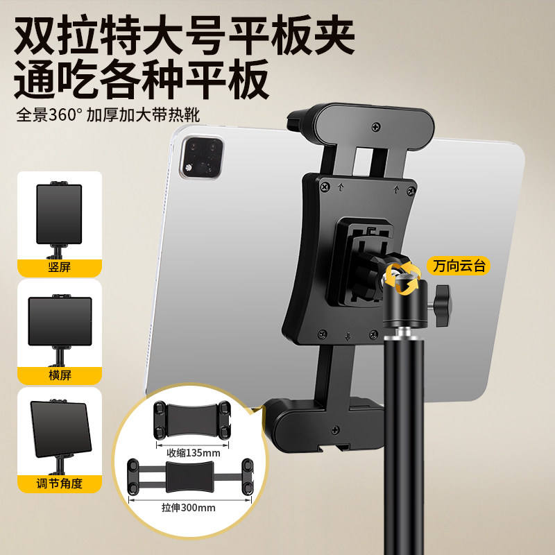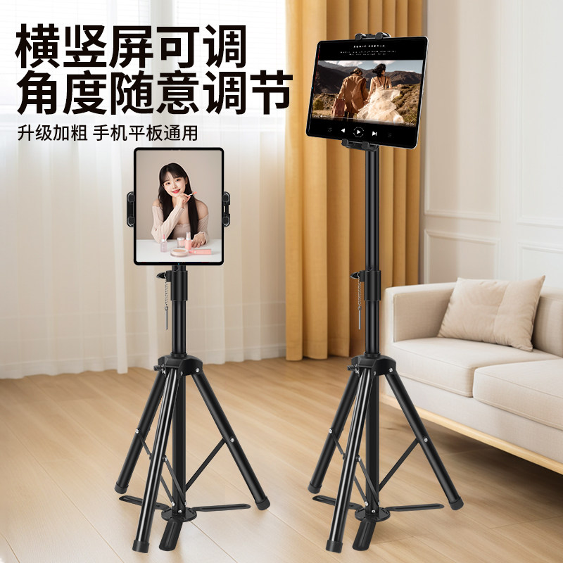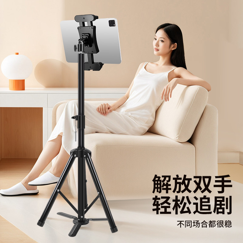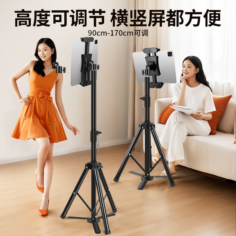 带脚踏板平板支架ipad电脑落地式三脚架通用拍照直播网课视频考研复试多功能夹专用支撑架子