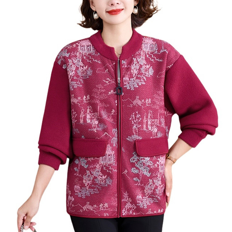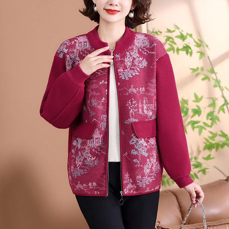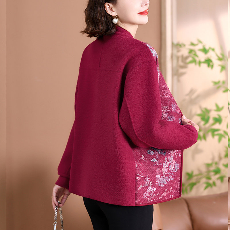 恒源祥中老年女装秋季外套新款毛呢开衫新中式妈妈装大码春秋上衣