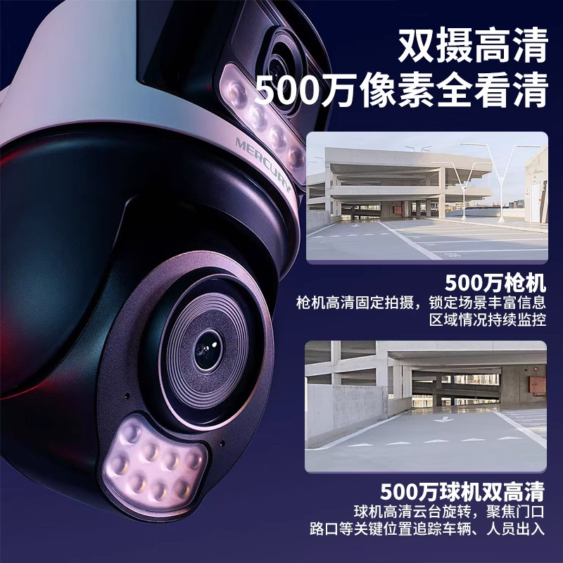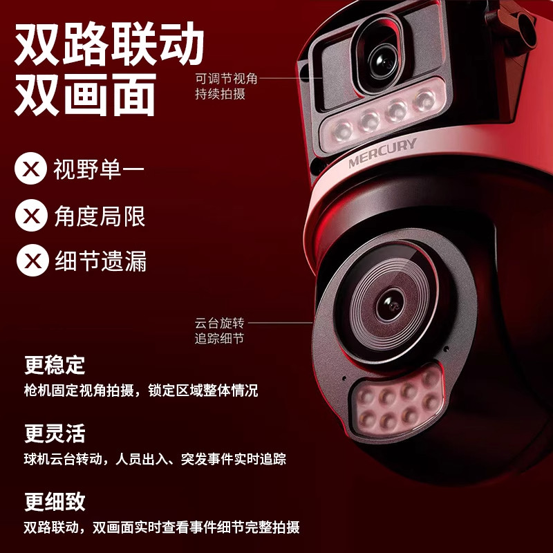 水星室外防水监控摄像头无线枪球联动网络高清全彩夜视语音对讲双目双画面全景wifi热点家用手机远程人来灯亮