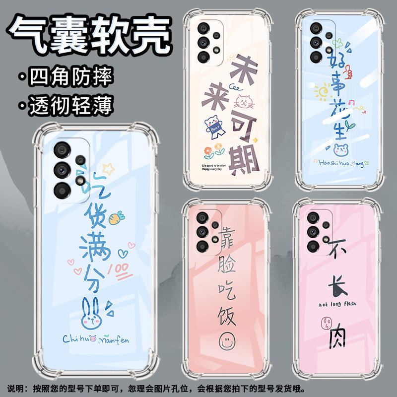 适用三星A32手机壳三星A55时尚三星A52吃喝玩乐三星A33气囊壳三星A71防摔高级感全包边简约硅胶保护套
