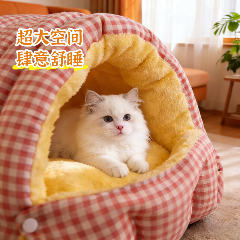 猫窝冬季保暖半封闭式可拆洗四季通用猫咪窝狗窝猫床猫屋幼猫窝垫